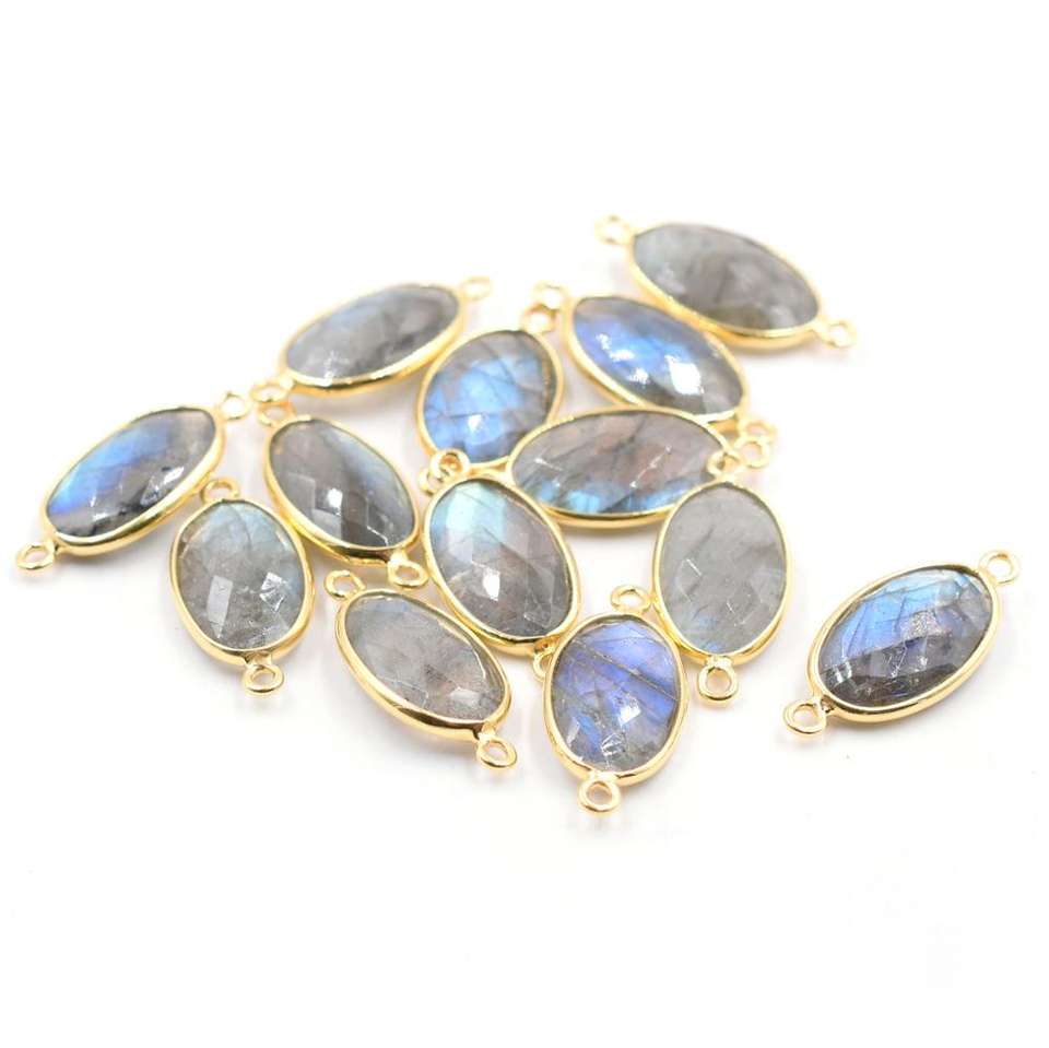 Nombre del Producto:Conector Chapado en Oro con Bisel de Plata y Labradorita