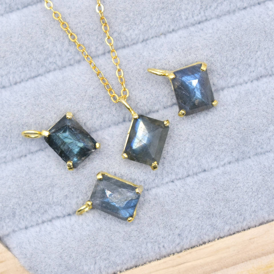 Collar con Labradorita en Engaste de Puntas, Forma Rectangular, Gema Facetada, Collar con Dije de Aro Único, Collar Elegante