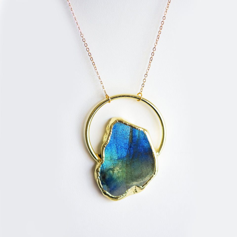 Palabra clave:Collar de la rebanada de la piedra preciosa, collar de la rebanada, collar electrochapado