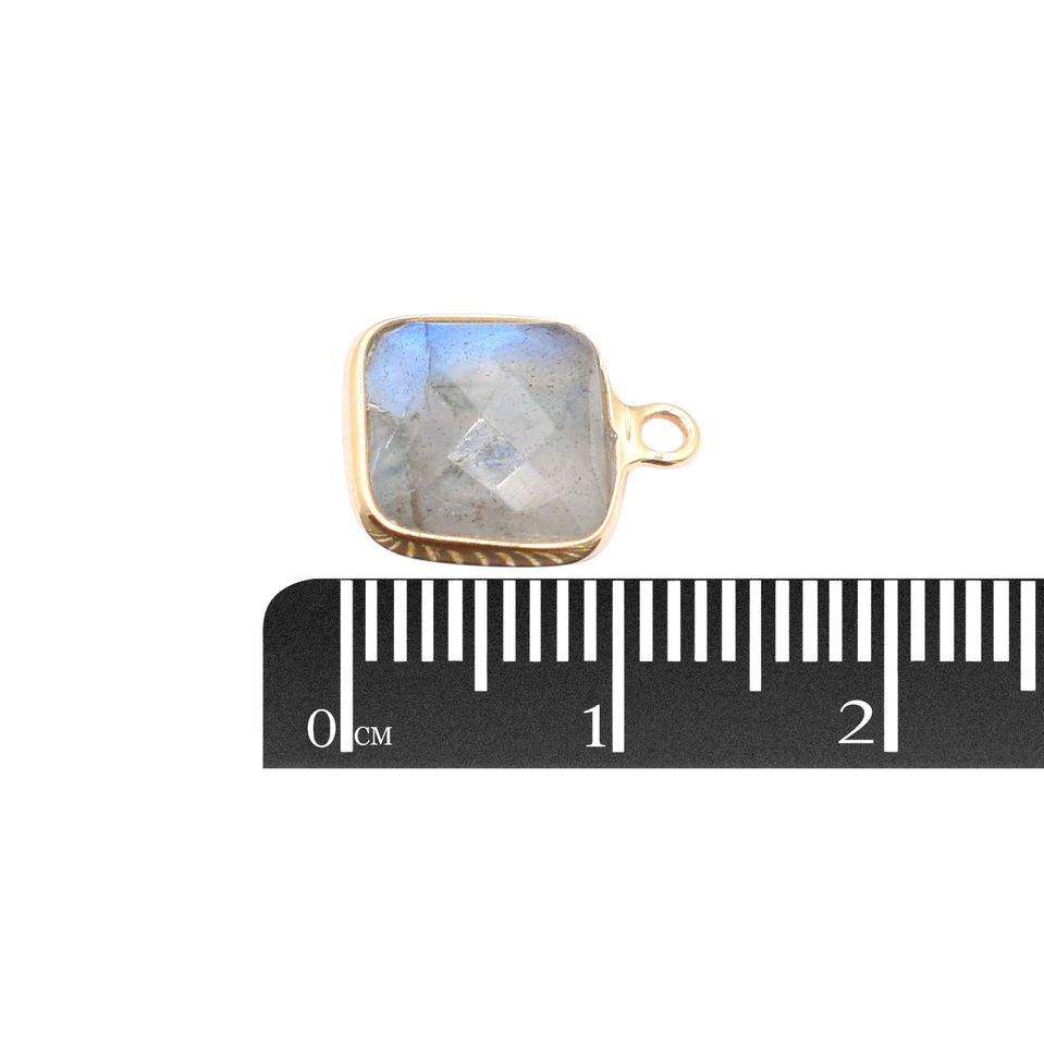 Nombre de la Piedra:Colgante de labradorita cuadrada con bisel de plata y baño de oro