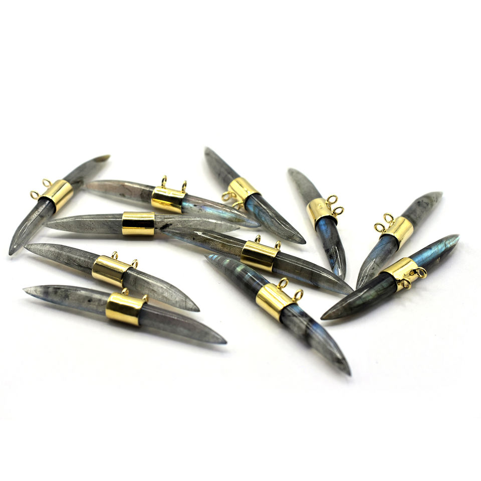 Nombre del Producto:Colgante Chapado en Oro con Bisel Plateado en Forma de Espada de Labradorita