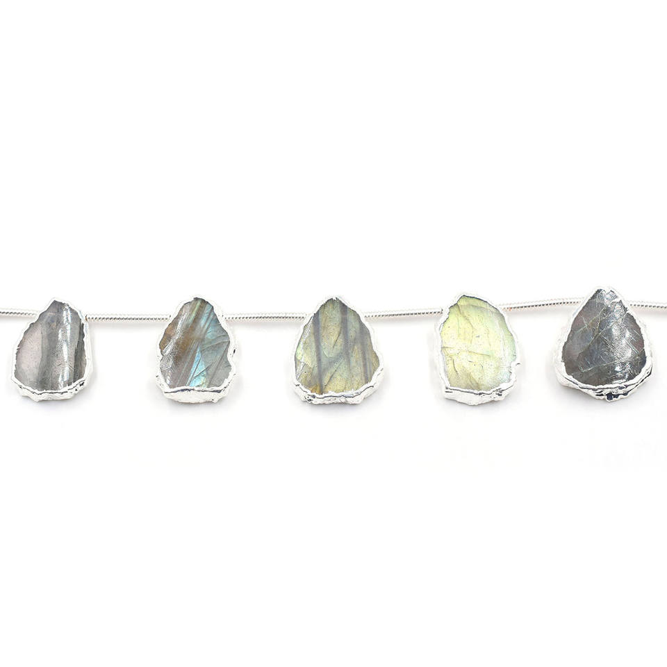 Nombre del Producto:Hilo de 10 cuentas de labradorita perforadas lateralmente y plateadas en plata.