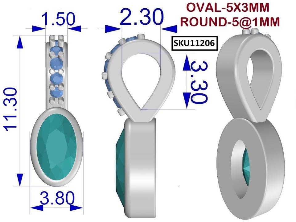 Tamaño de la Piedra:Ovalado L- 5X3 MM, Zircón Redondo- 1 MM
