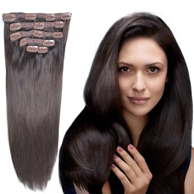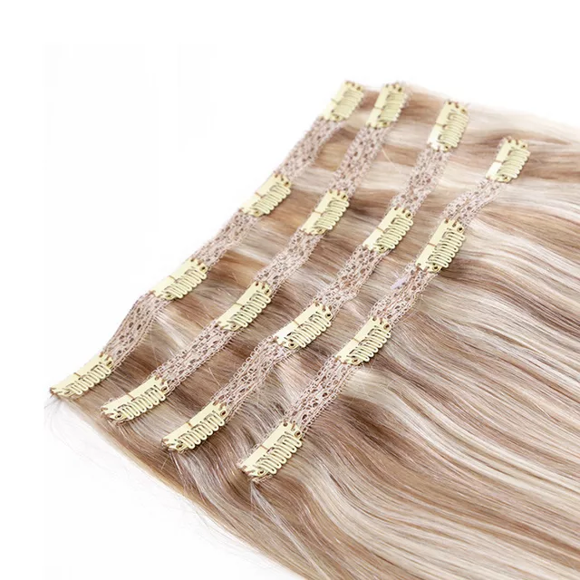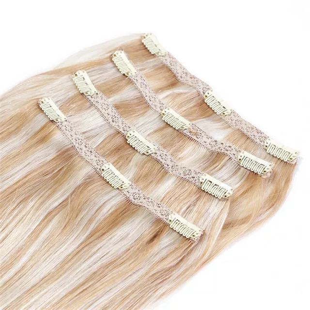 Extensiones de Cabello con Clip de Encaje, Cabello Humano Virgen, Doble Trama, Base de Encaje Transpirable, Clips Seguros, Invisibles y Ligeras para Mujeres