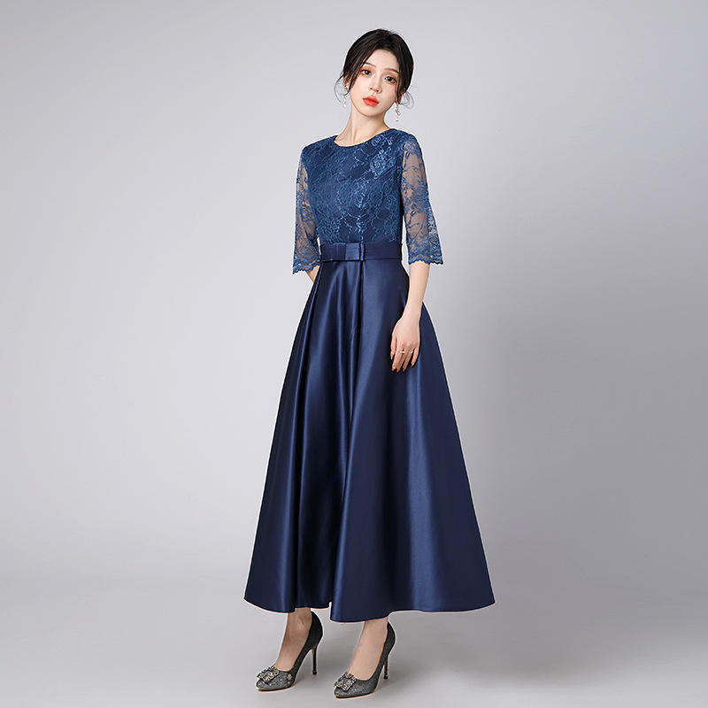Vestido de Noche de Encaje Ajustado para Presentadora, Elegante Falda Larga para Boda, Fiesta o Ceremonia Anual