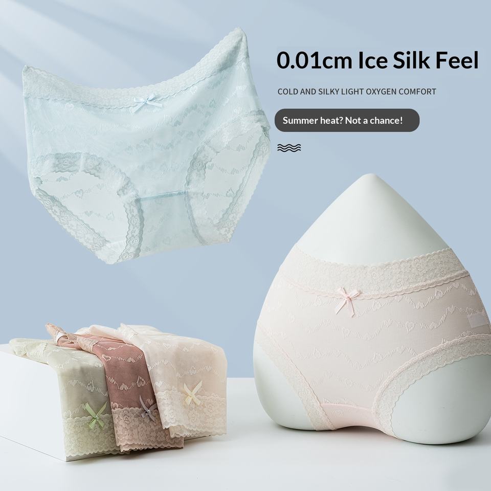 Braguitas de encaje de malla de talle medio, sin costuras, ultrafinas, de jacquard, de nailon, transpirables y cómodas para el verano.