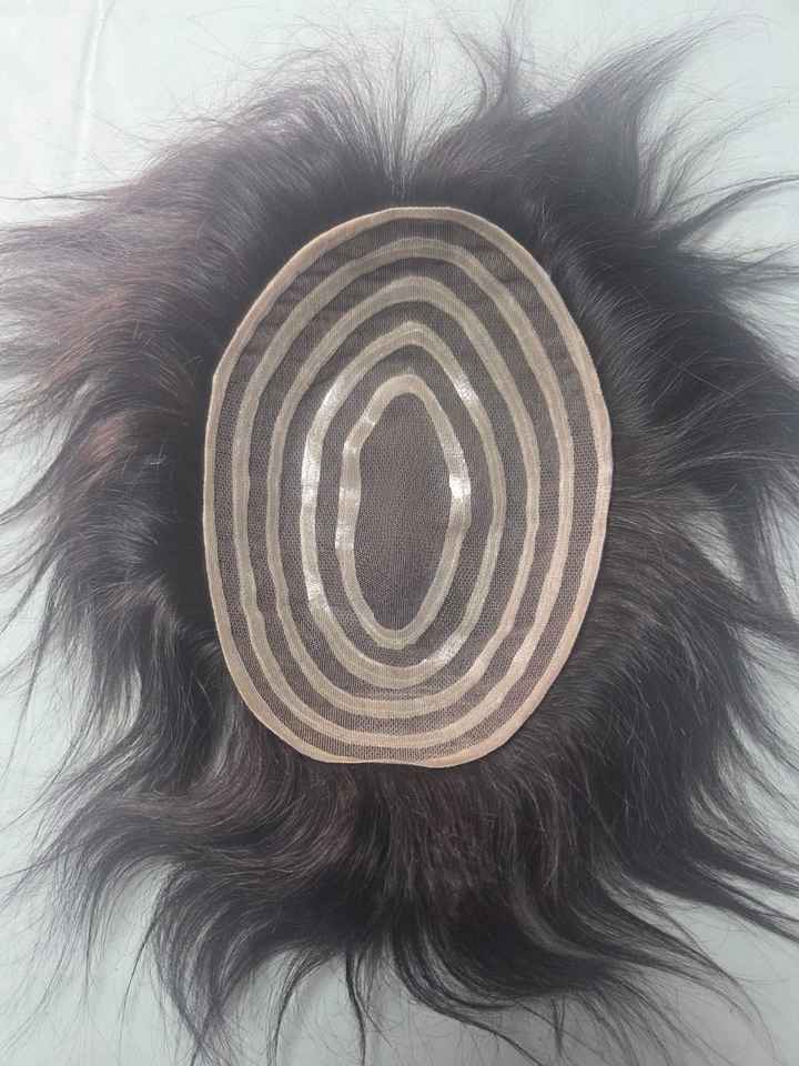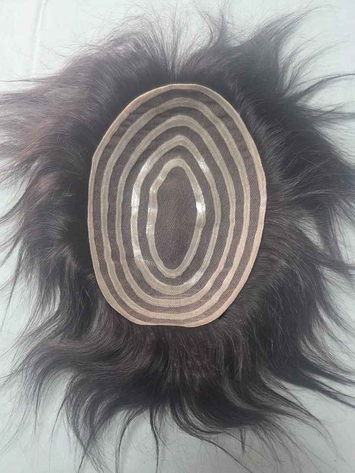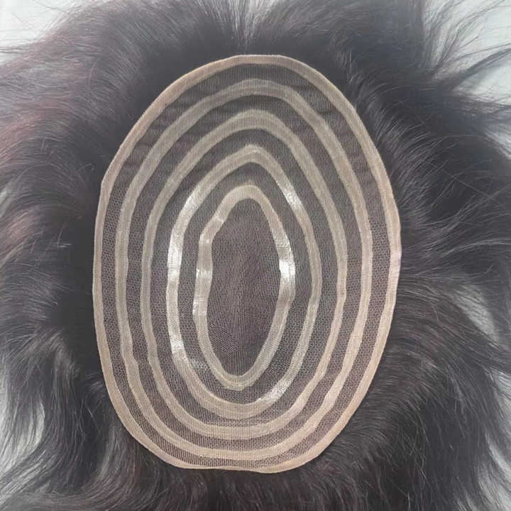 Peluca de Encaje PU para Hombre, Prótesis Capilar de Cabello Remy Indio con Ondas Naturales y Estilos Lacio Rizado, Peso 40-80g