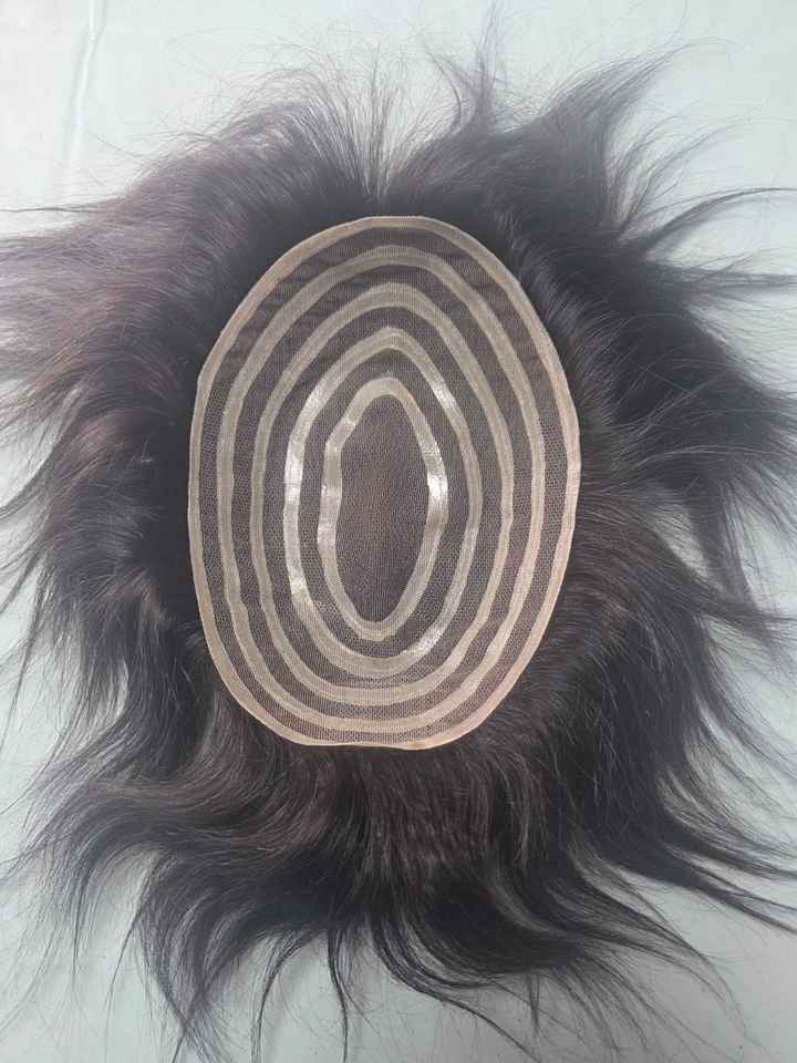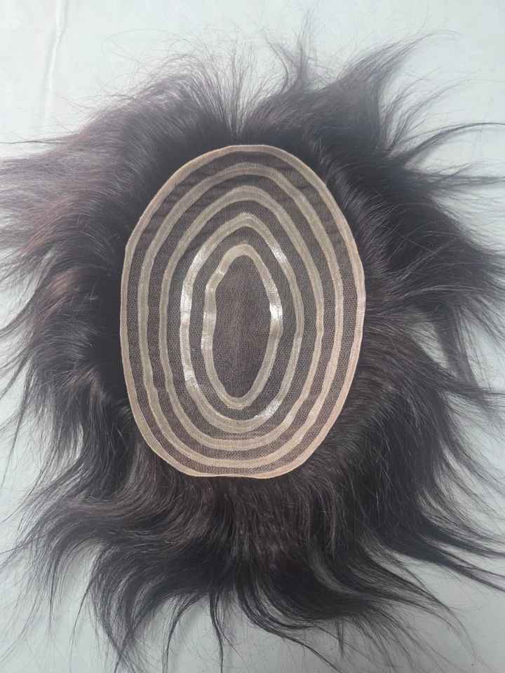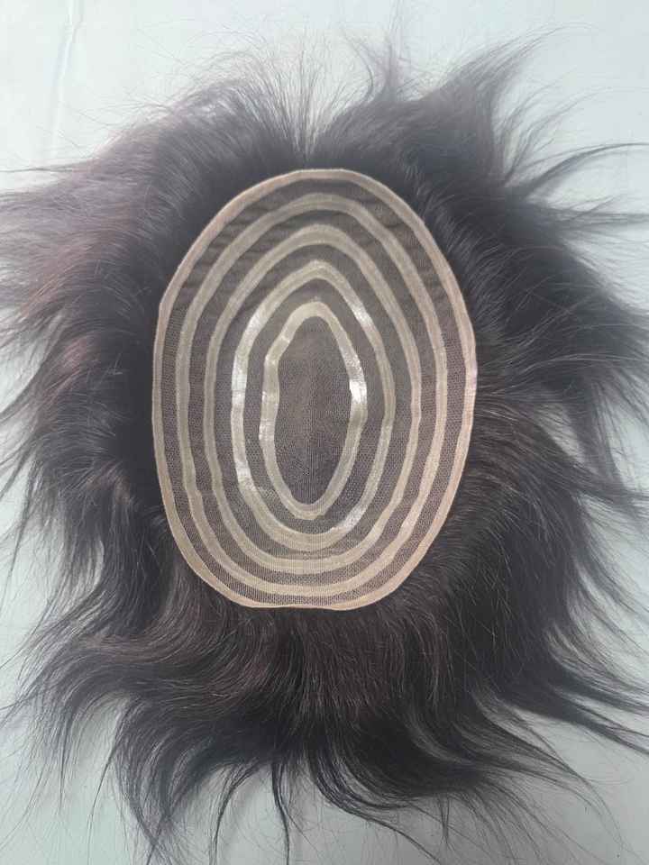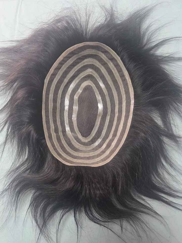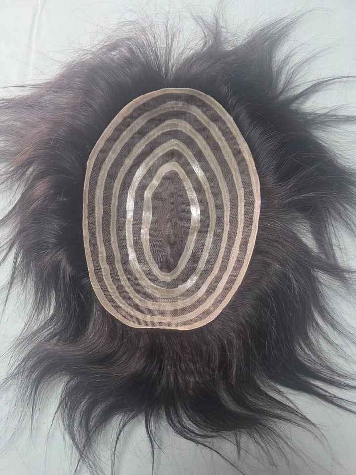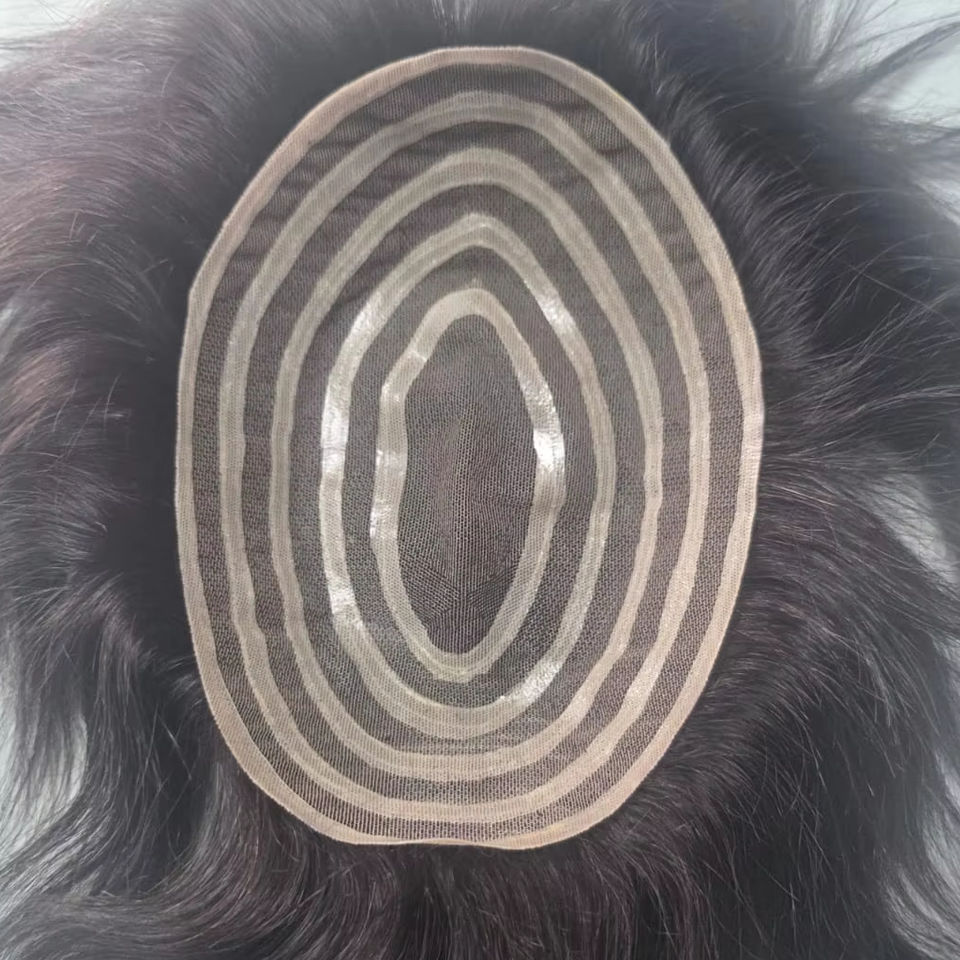 Peluca de Encaje PU para Hombre, Prótesis Capilar de Cabello Remy Indio con Ondas Naturales y Estilos Lacio Rizado, Peso 40-80g
