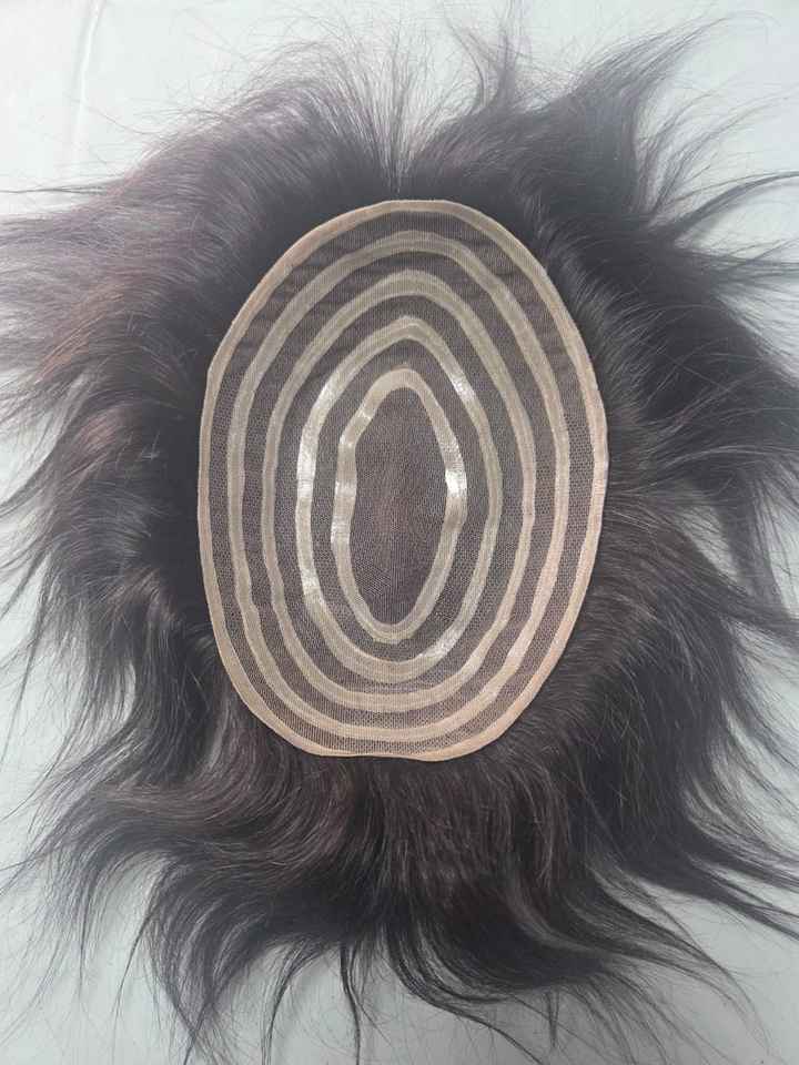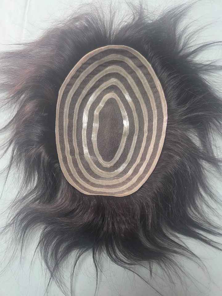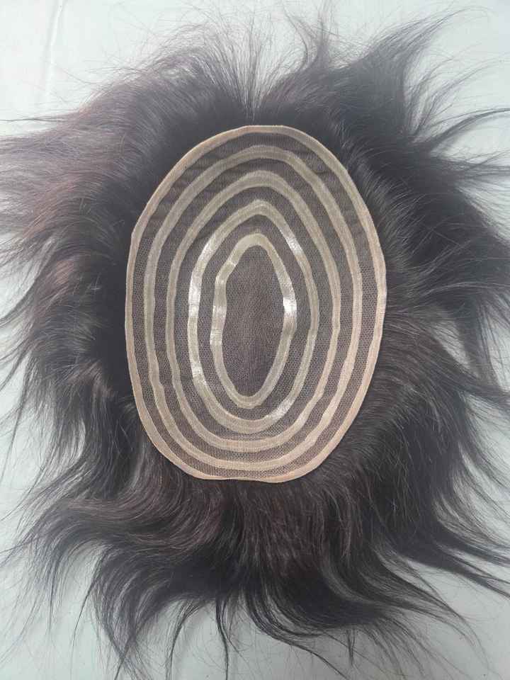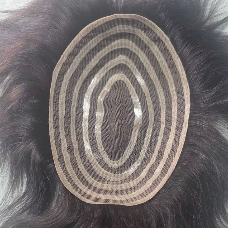 Peluca de Encaje PU para Hombre, Prótesis Capilar de Cabello Remy Indio con Ondas Naturales y Estilos Lacio Rizado, Peso 40-80g