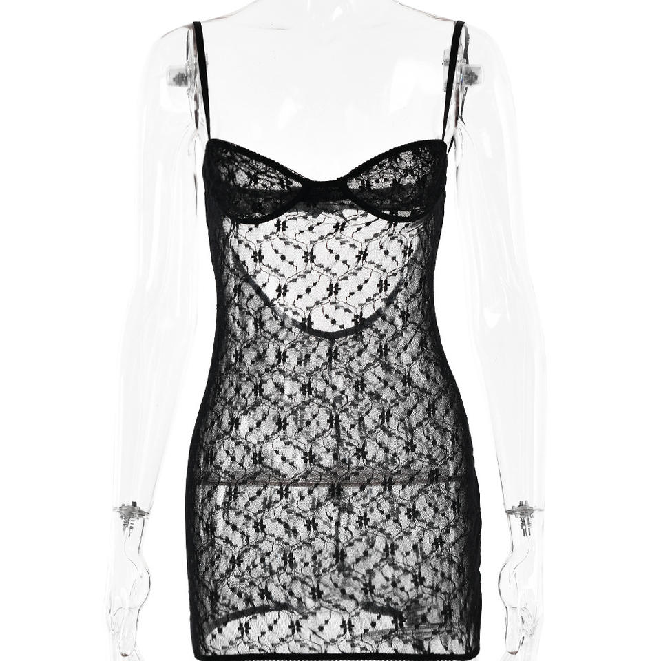 Lace Patchwork Backless Slim Fit Spaghetti Strap Mini Dress Natural Waist Party Casual Breathable Short Skirt