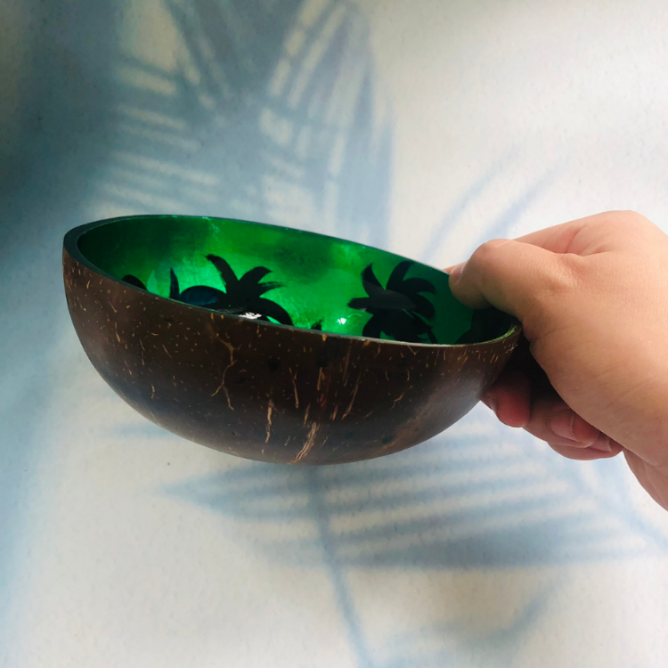 Tazón de Cáscara de Coco Lacado, Ecológico, Hecho a Mano, con Diseño Floral, Color Personalizable, Precio de Fábrica, Artesanía Binh Minh