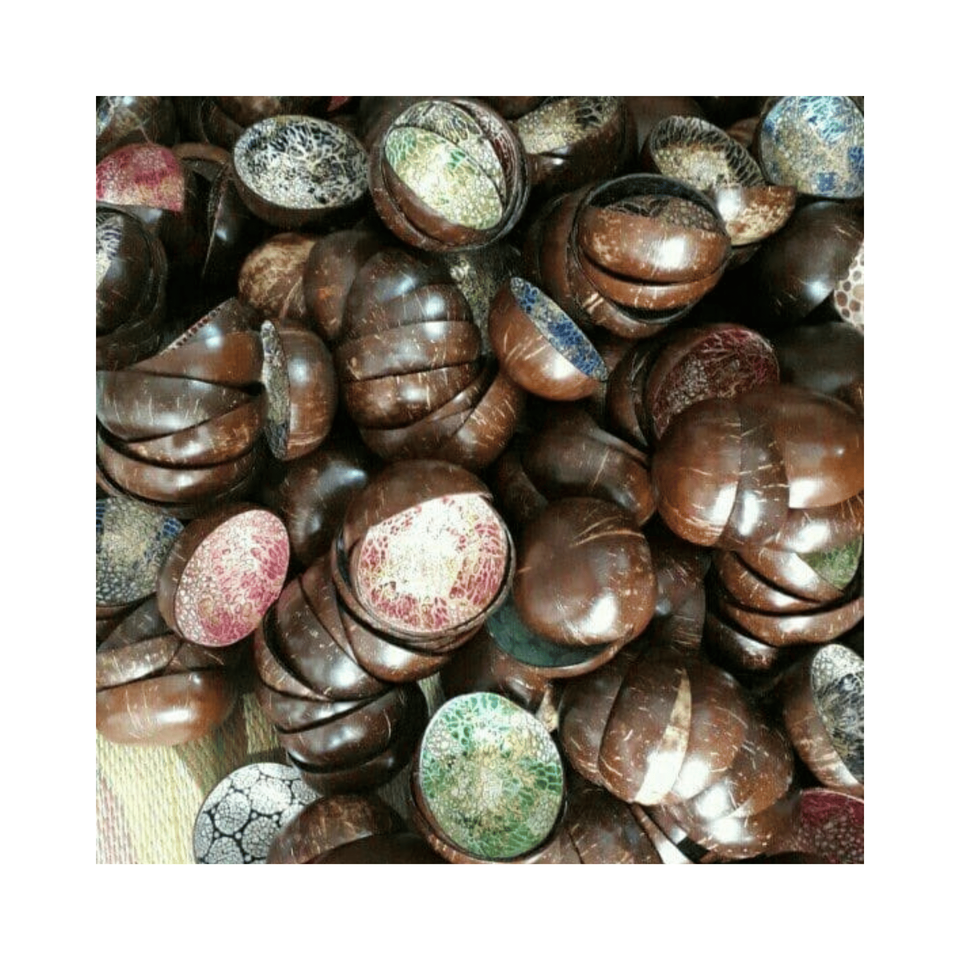 Cuenco decorativo exótico de coco con acabado lacado, material: concha pulida; uso: decoración de eventos; origen: proceso artesanal vietnamita