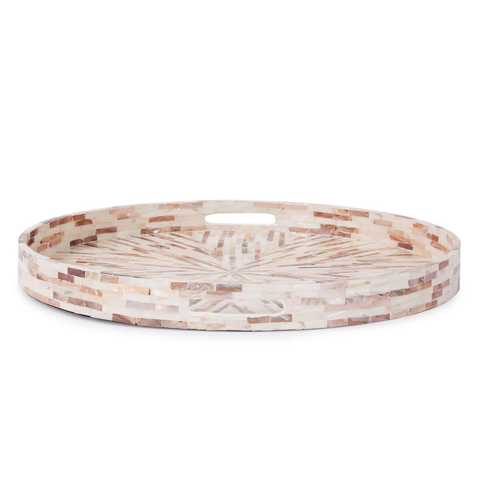 Bandeja Redonda Ecológica de Madera Lacada con Incrustaciones de Madreperla, Decoración para el Hogar al por Mayor, Materiales Naturales, Artesanía Vietnamita SMVTC