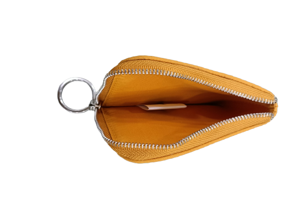 Tarjetero de viaje plegable para mujer, cadenas de cremallera impermeables cortas de poliéster reciclado de doble color de alta calidad, caramelo bohemio abierto