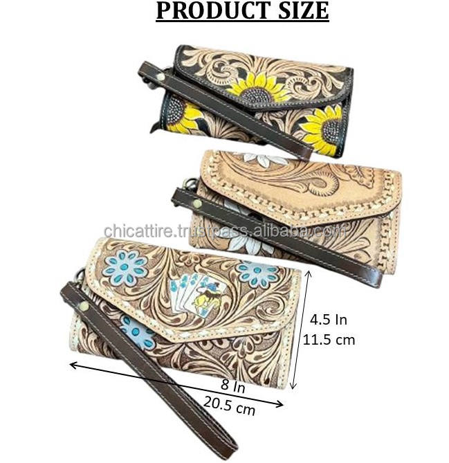 Product name:Hand Tooled Leather Sun Flower Wristlet Wallet