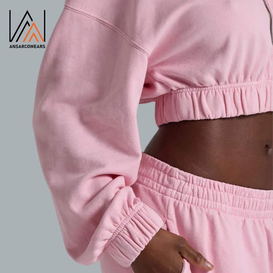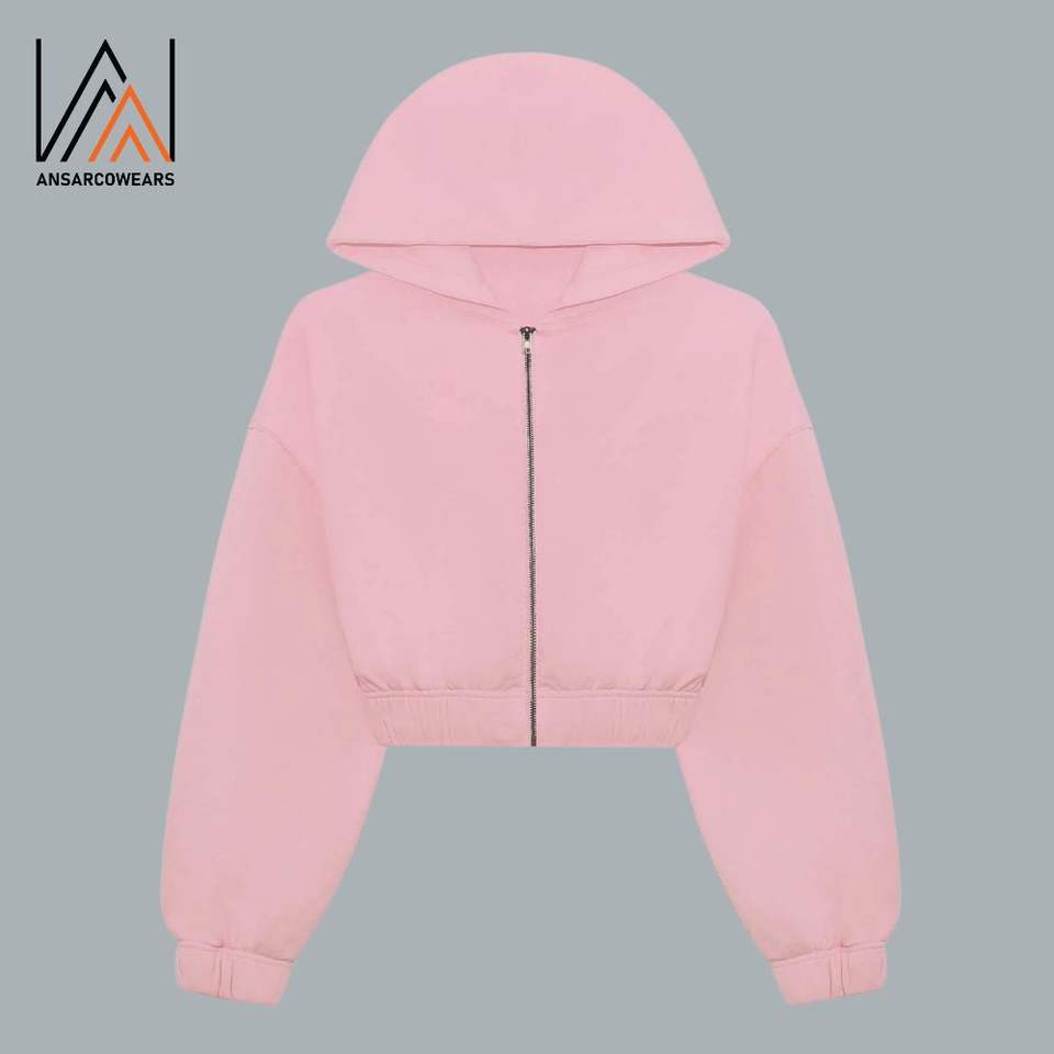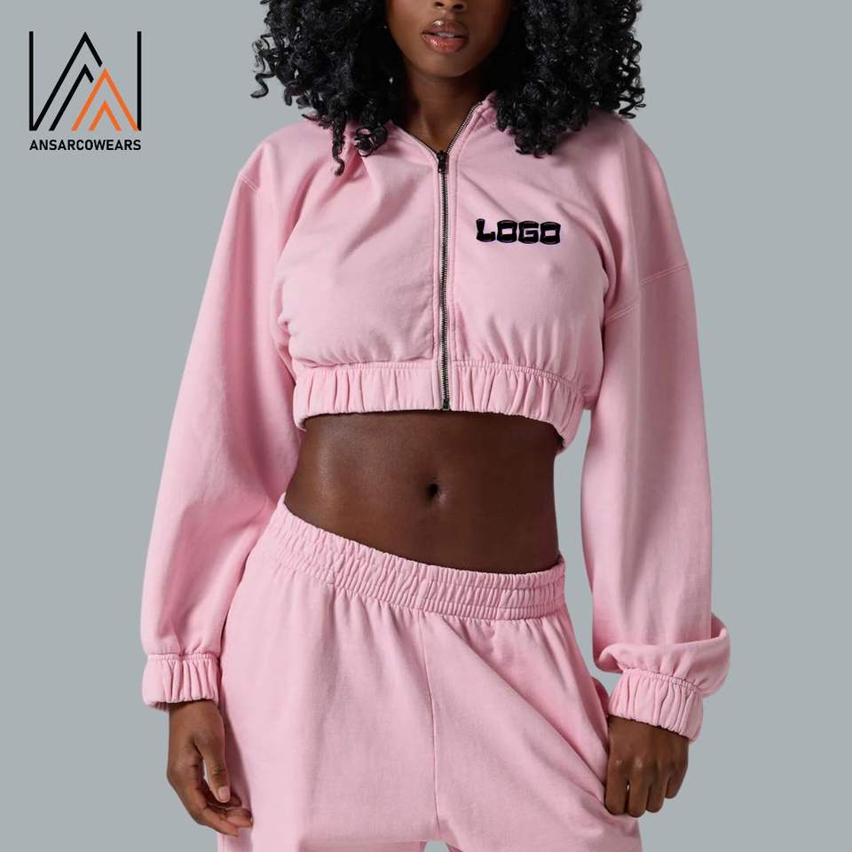 Sudadera de lana de algodón con logotipo personalizado para mujer, Sudadera con capucha con cremallera completa, Top corto con Etiqueta Privada, Sudadera con capucha recortada de seda para mujer al por mayor