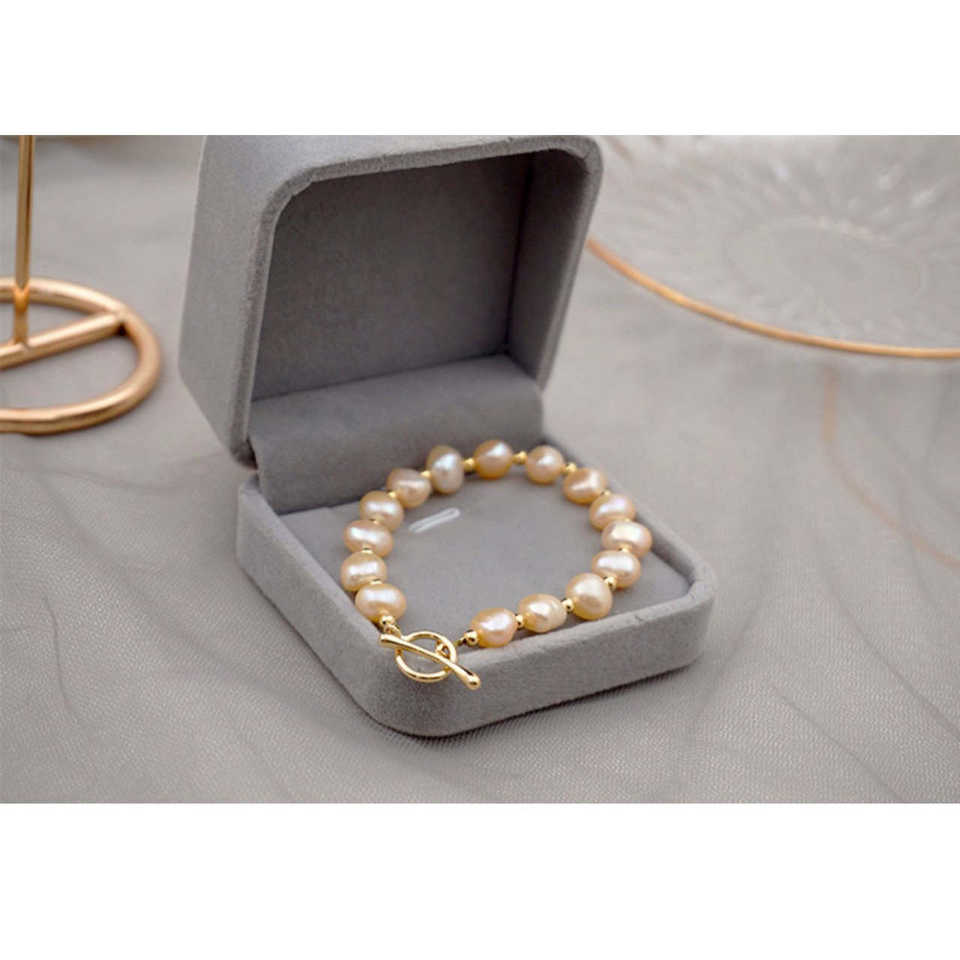 WENCHI Pulsera hecha a mano con perlas de agua dulce para mujer con diseño fluido, color blanco, 15-16 cm
