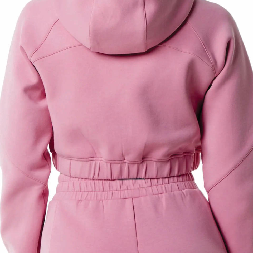 Sudadera con capucha recortada de manga larga para mujer, ropa de gimnasio de lana suave con bolsillo con cremallera de corte crudo, logotipos de serigrafía de temporada de invierno