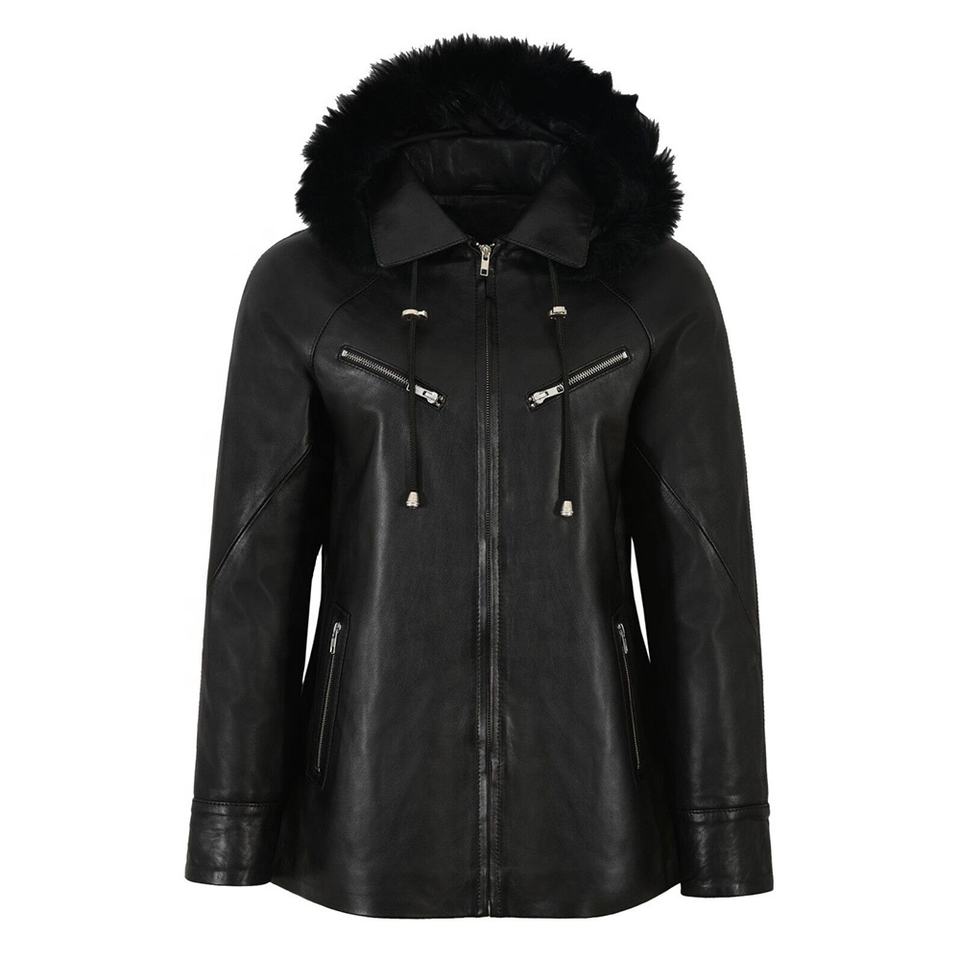 Nueva chaqueta de cuero hasta la rodilla para mujer con capucha de piel sintética desmontable acolchada y transpirable temporada de invierno forro de nailon