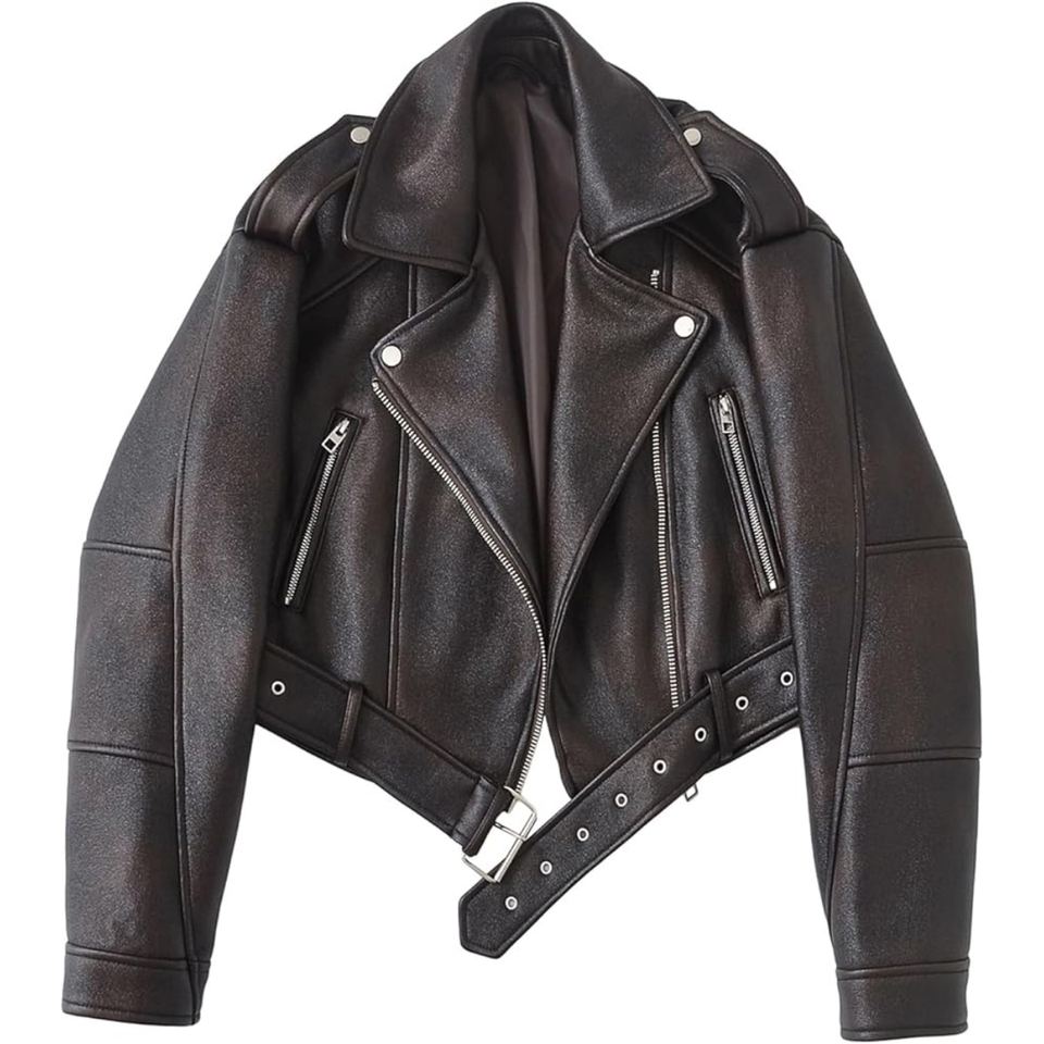 Chaqueta de Motociclista de Cuero de Oveja Auténtico para Mujer, Estilo Motero, Cuero Suave, Corte Ajustado