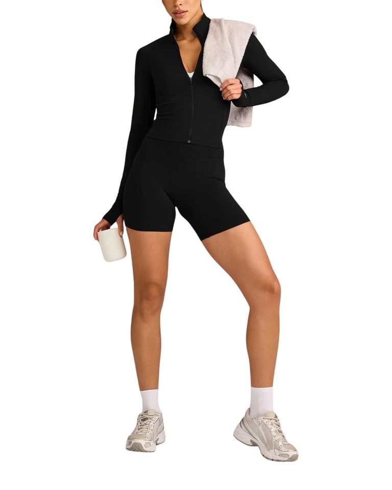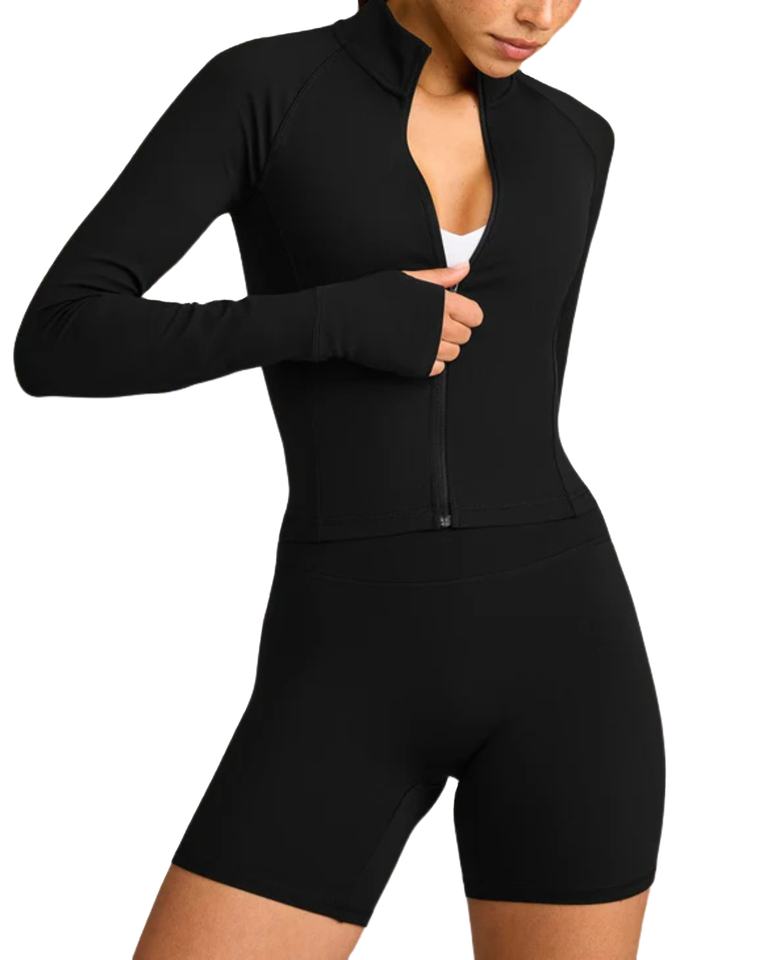 Chaqueta Deportiva Ligera y Transpirable para Mujer, Corte Ajustado, con Cierre, Orificios para Pulgares, Cuello Alto, Bolsillos, para Yoga, Gimnasio y Entrenamiento