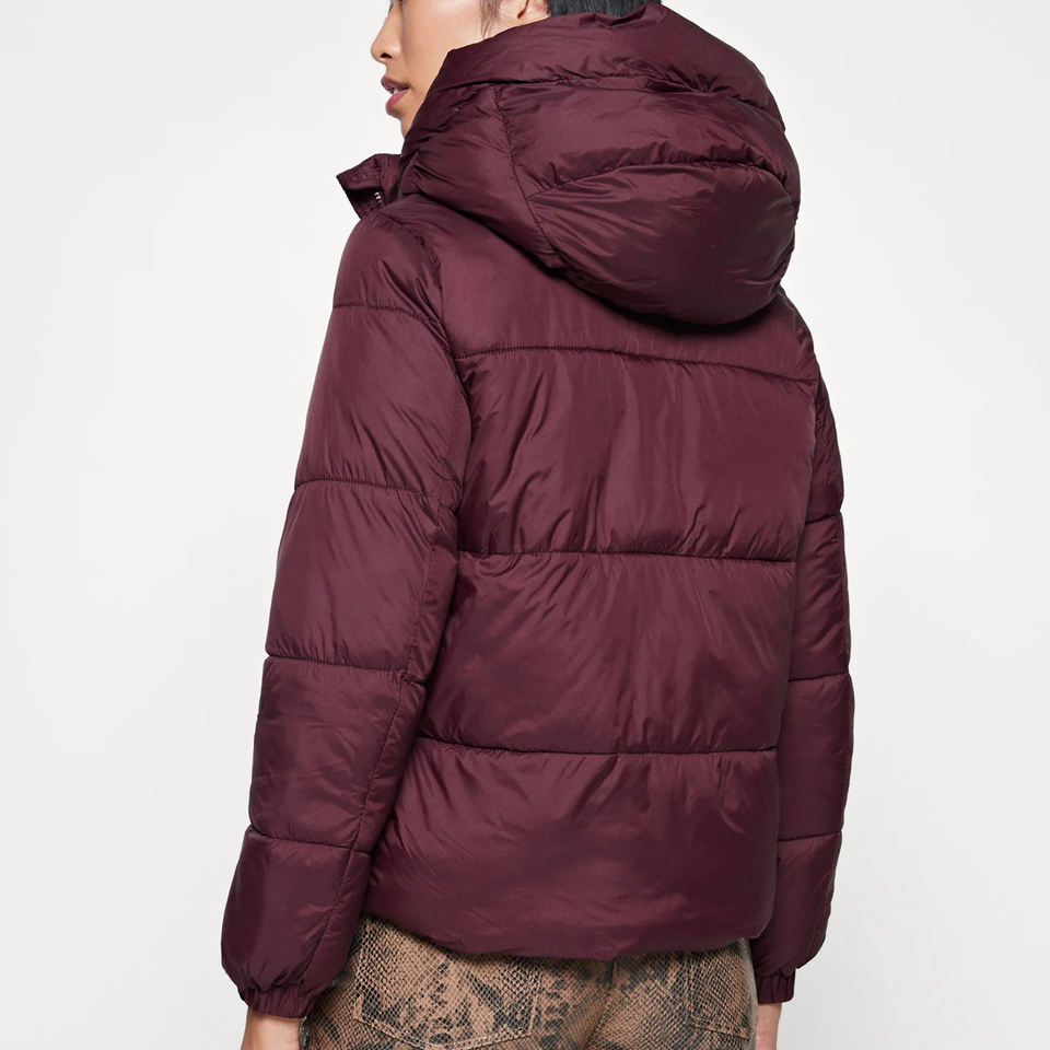 Chaqueta de invierno para mujer, corta, transpirable, acolchada, capucha de burbujas, patrón Floral, forro de seda, tela tejida, encaje a prueba de viento