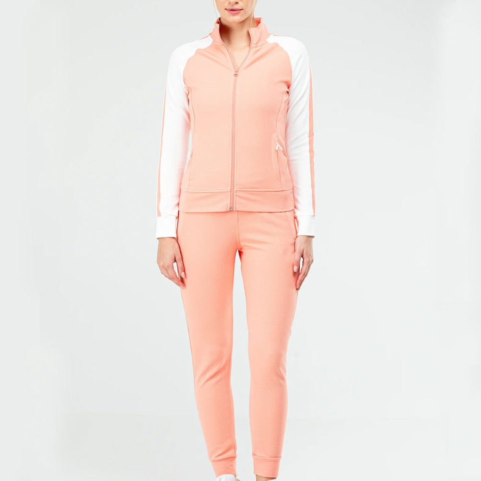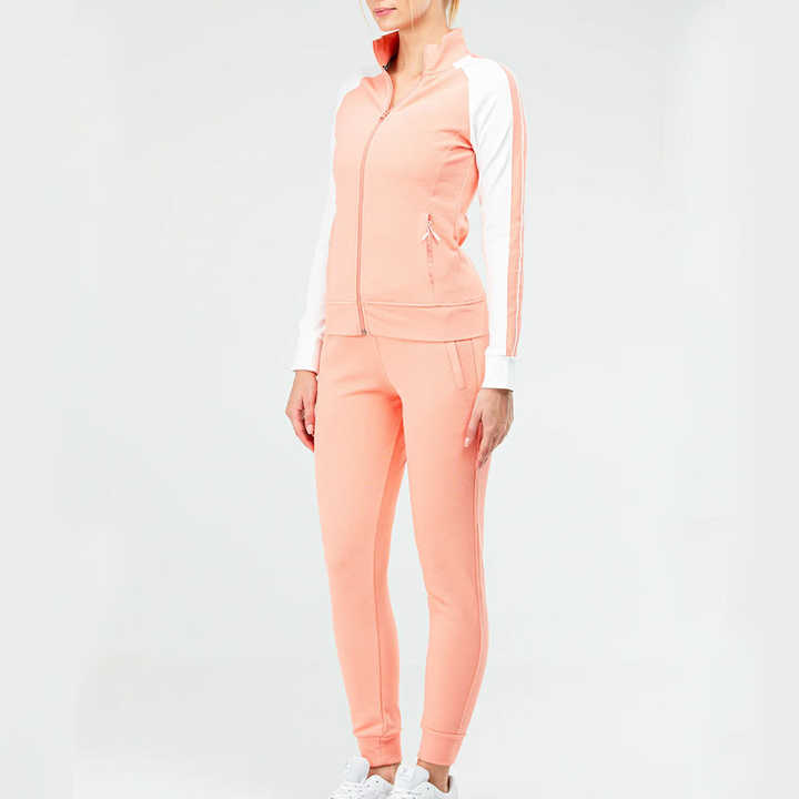 Conjunto deportivo de dos piezas para mujer, chándal al por mayor, cómodo, con logo personalizado impreso, con cremallera, para correr.