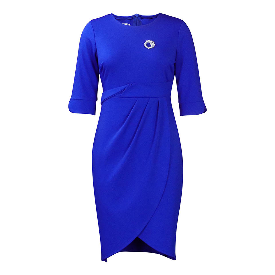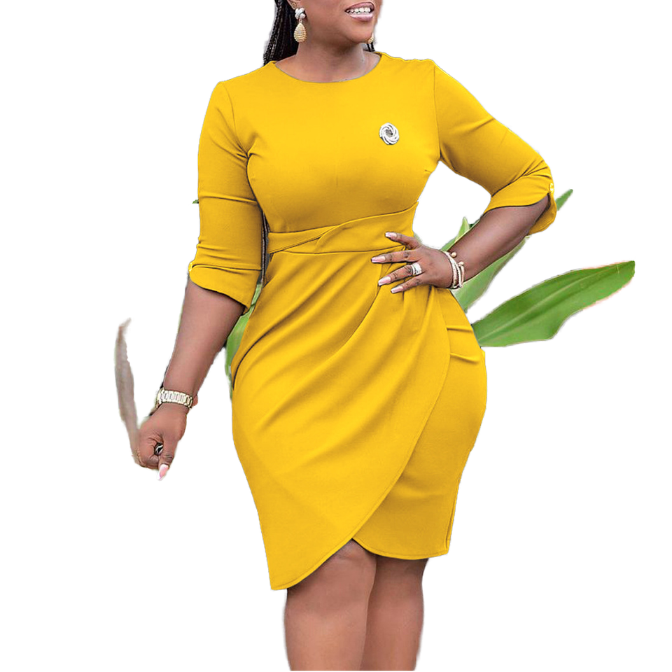 Vestido Elegante de Verano para Mujer, Transpirable, de Lana Peinada, con Cintura Imperio Fruncida, Cuello Redondo, Media Manga, Color Sólido, Casual, para Oficina, Fiesta, Hasta la Rodilla