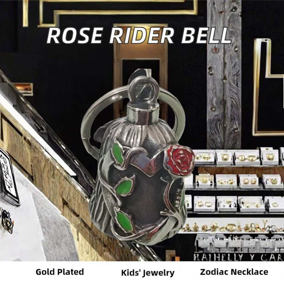 Collar con Colgante de Gremlin Lady Rider y Campana, Cadena de Serpiente Chapada en Oro Rosa con Corazón y Piedra de Zirconia, para Boda, Compromiso o Regalo