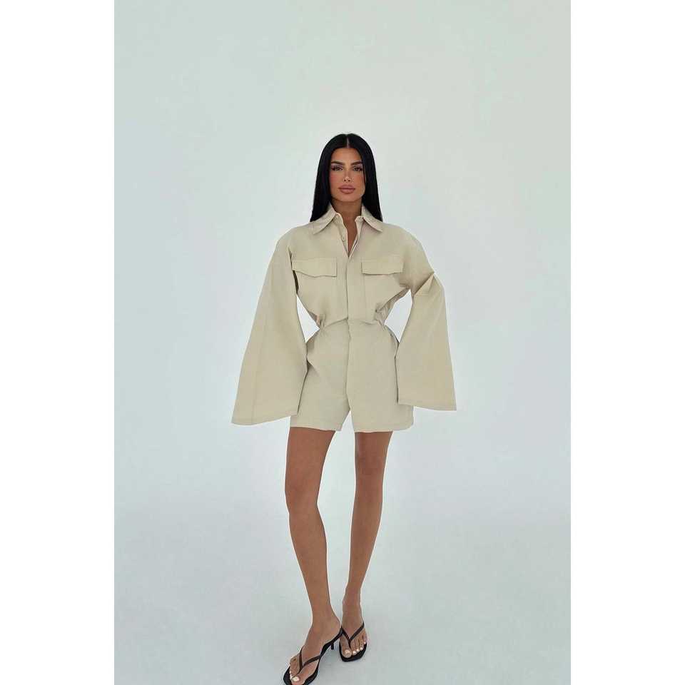 Vestido Sandy con detalle de abertura y cinturón de manga larga para mujer