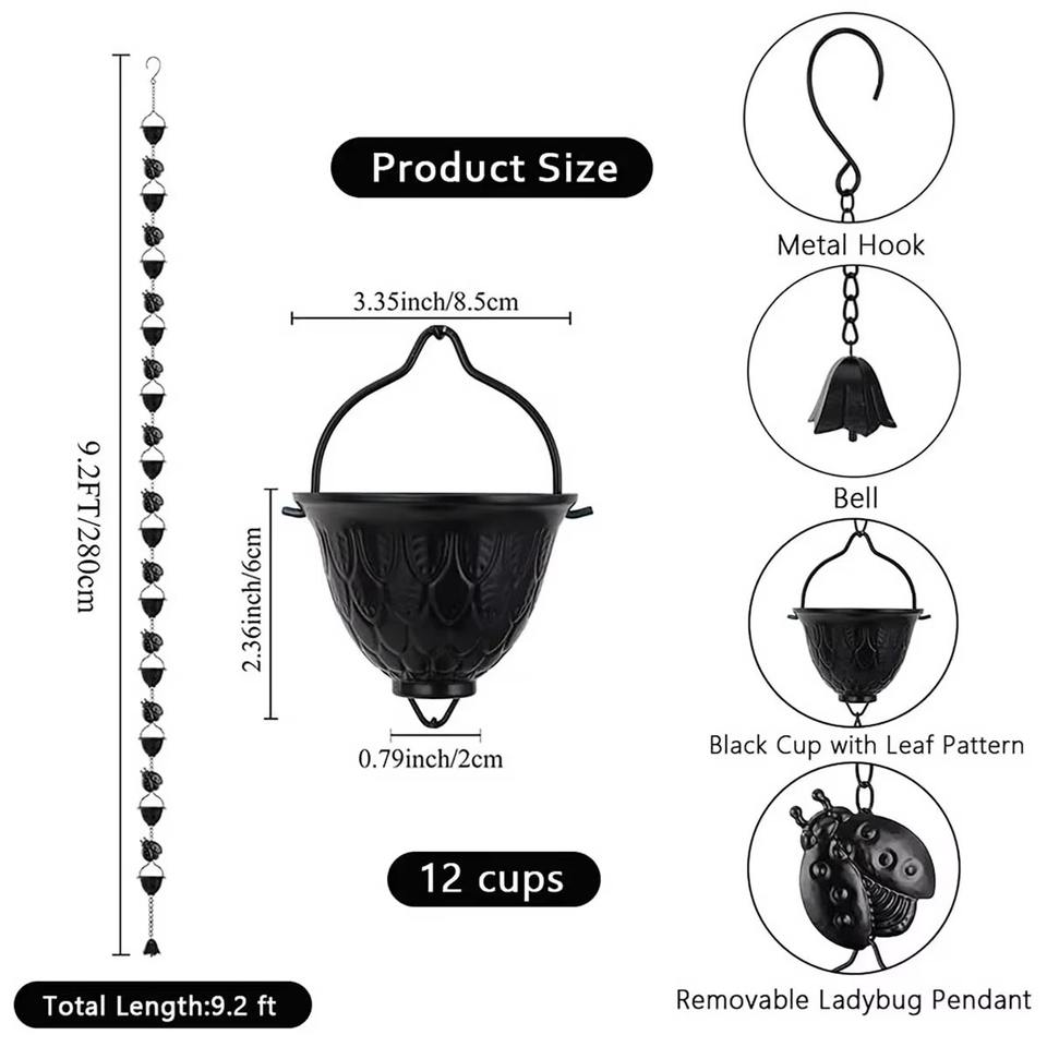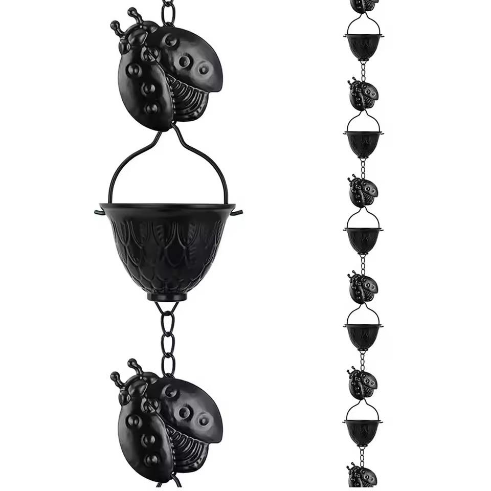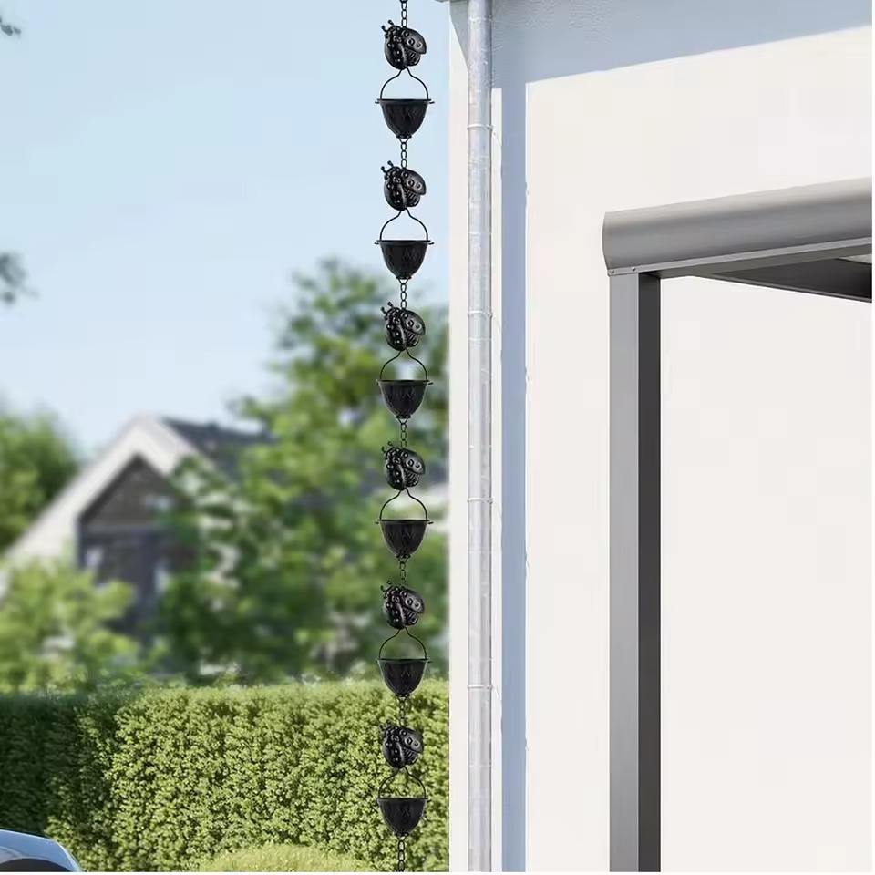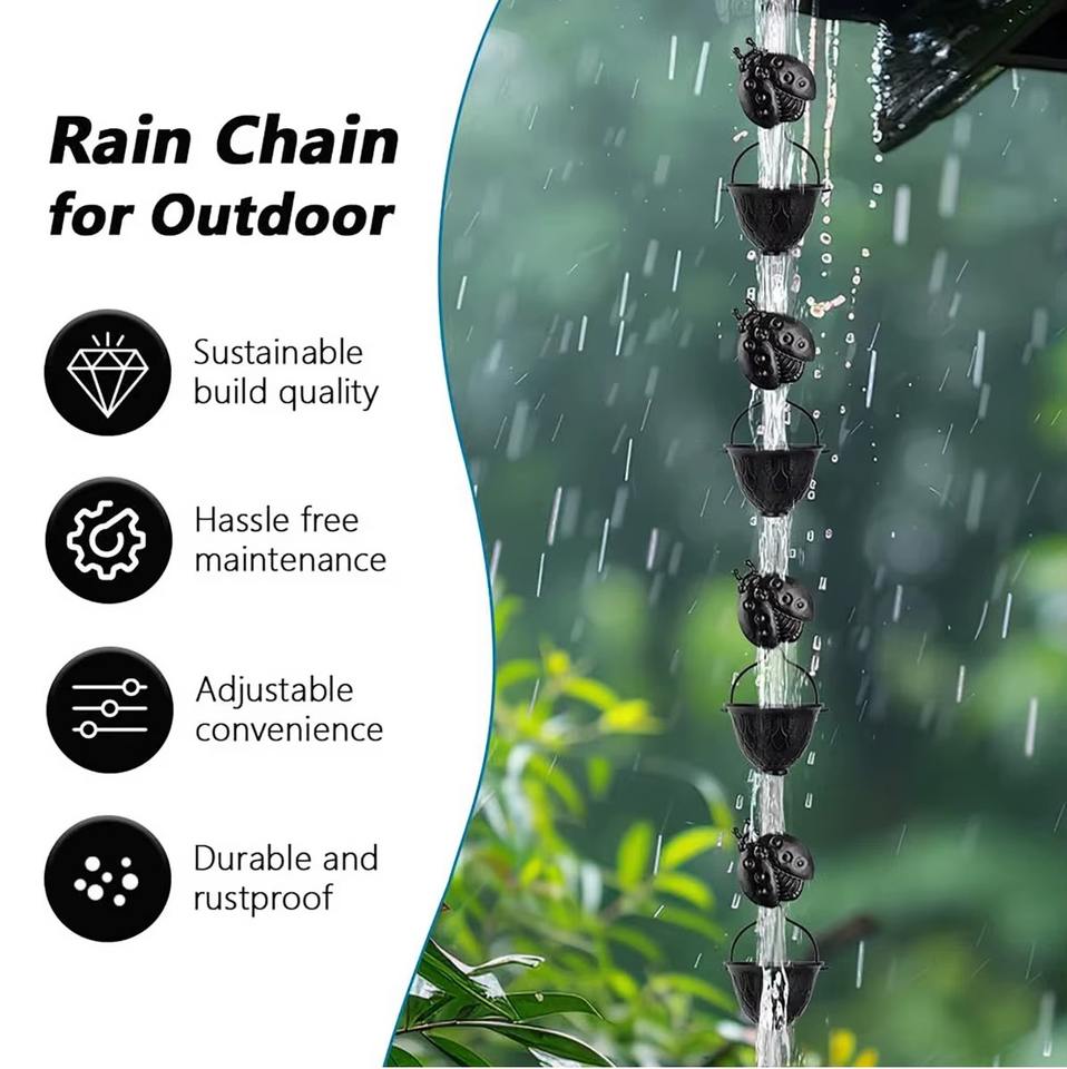 Cadena de Lluvia Metálica con Diseño de Mariquita y Cubos Recolectores, Cadena Decorativa para Drenaje de Agua en Jardín, Decoración Colgante para Patio