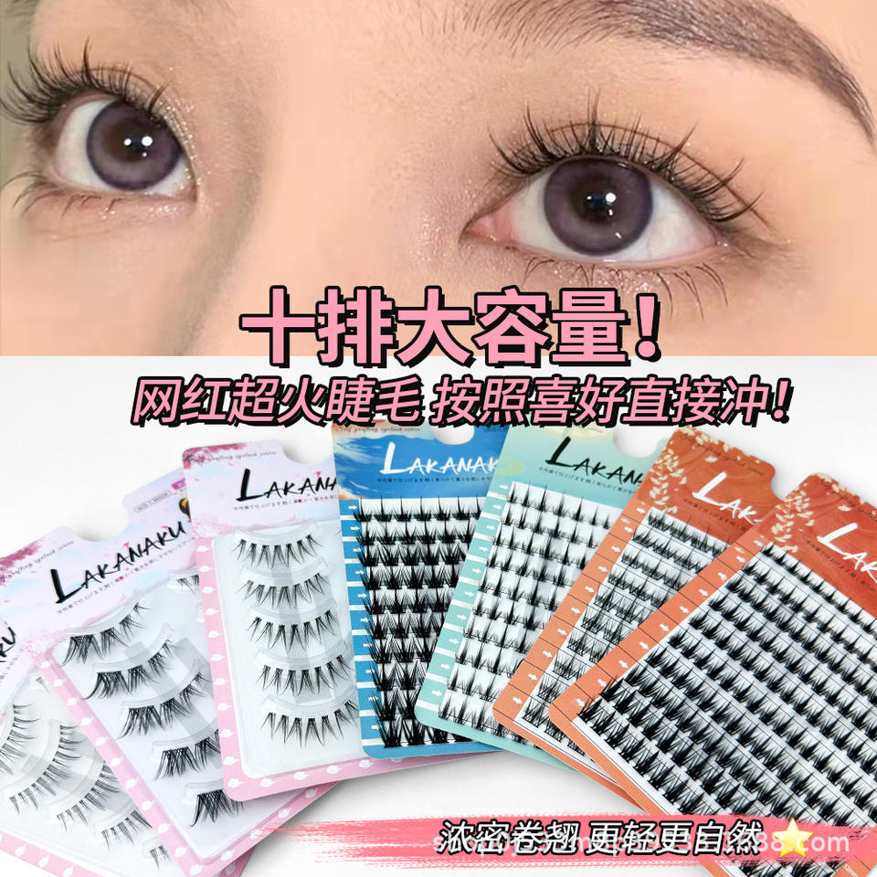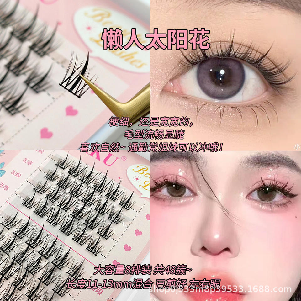 Pestañas postizas Lakanaku, 10 filas, forma de girasol, extensiones segmentadas suaves y naturales, semimanualizadas