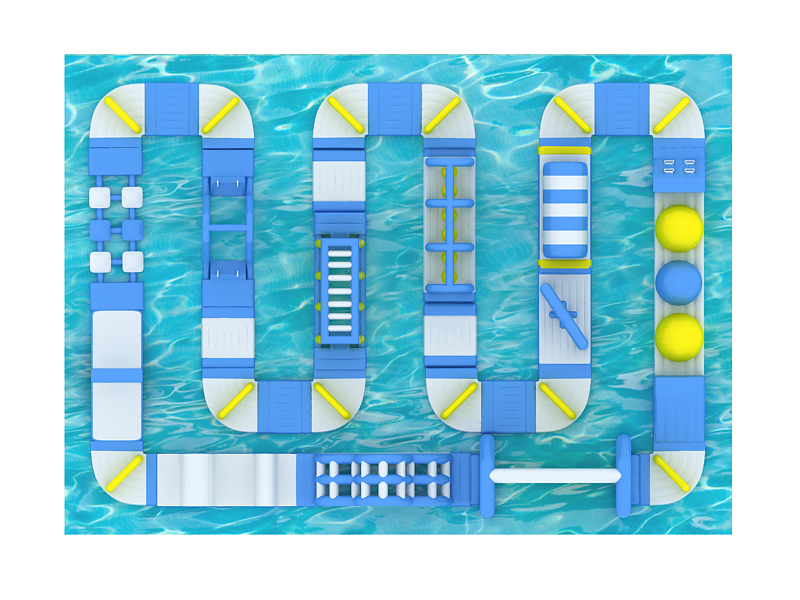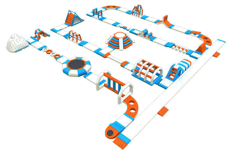 Parque acuático inflable flotante de lago con juegos de obstáculos y toboganes para todas las edades