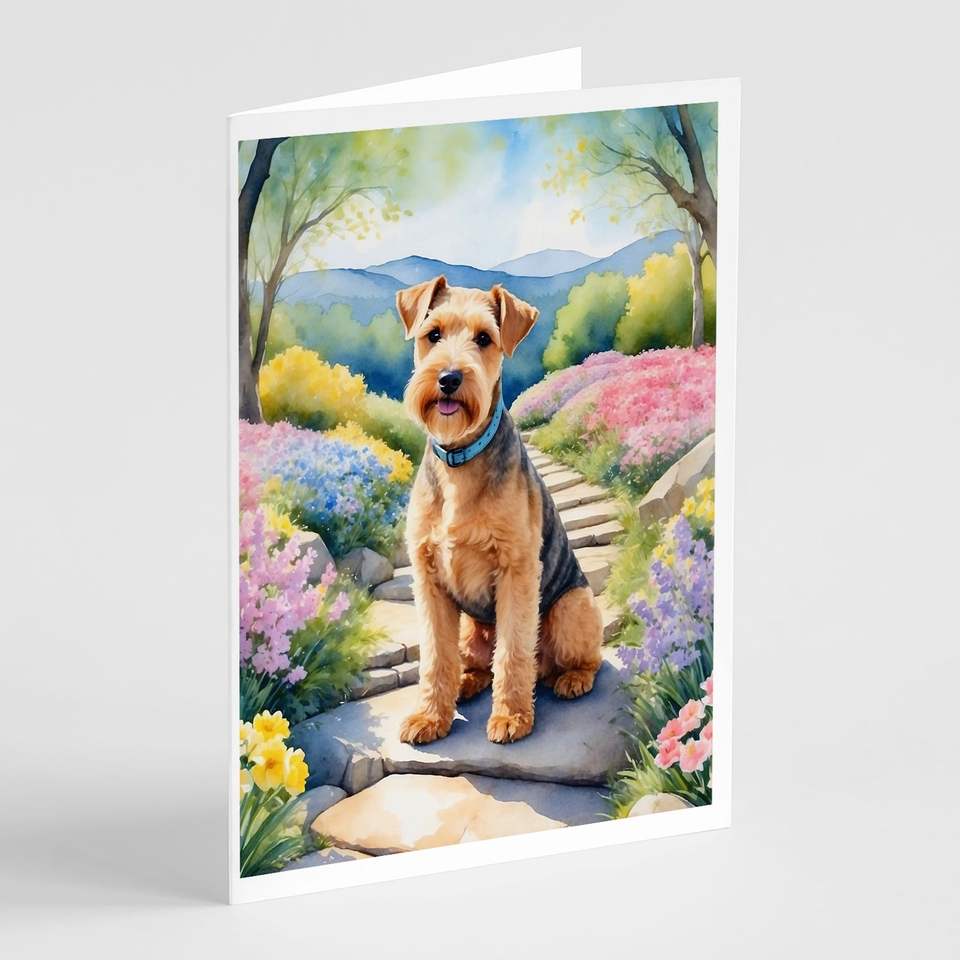 Lakeland Terrier Whimsical Spring Path Tarjetas de felicitación Paquete de 8 tarjetas de nota A7 en blanco con sobres Tamaño 5x7