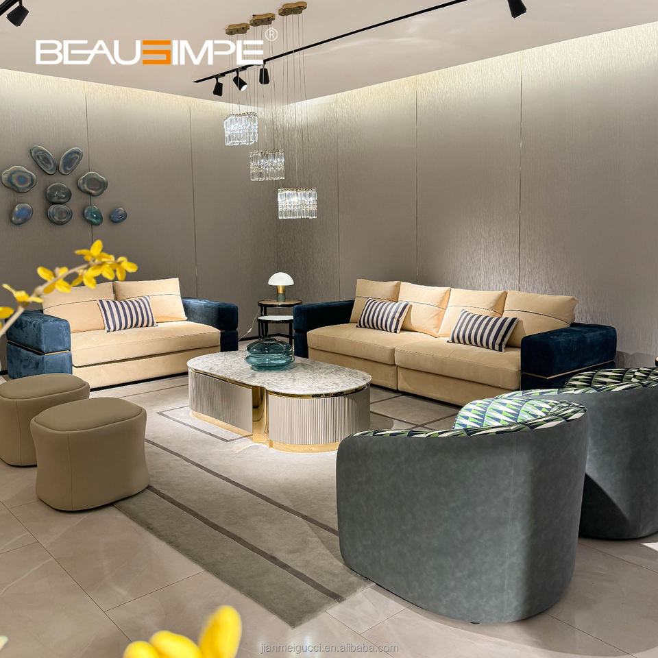 Nombre del producto:Conjunto de Sofá de Lujo para Sala de Estar en Cuero Italiano Lambert