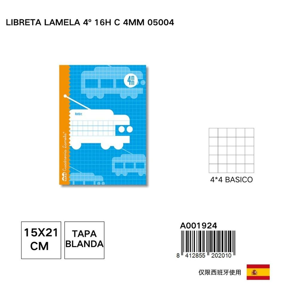 Cuaderno Lamela de 4 ° grado, 16 hojas, 4mm, papelería básica de rejilla, 100 páginas interiores, tipo Agenda, cubierta de cuero A5 espiral 8436609560003
