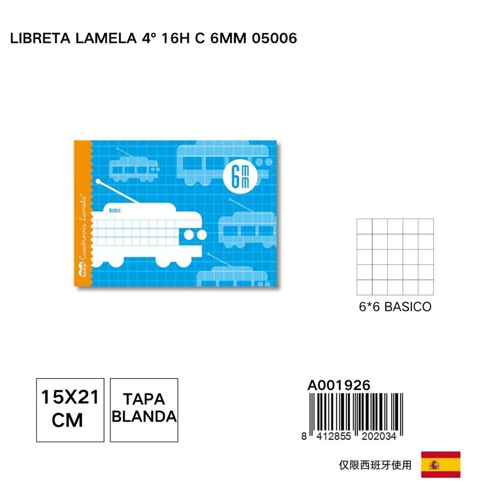 Papelería básica Lamela, cuaderno de 4. ° grado, rejilla de 6mm, tamaño A5, 16 hojas, 100 páginas interiores, libro de ejercicios encuadernado térmico, papel compensado