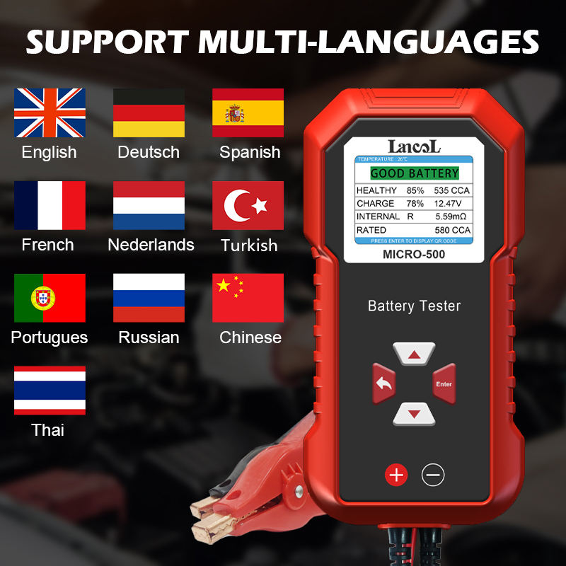 Lancol Automotive 12V Batería de coche CCA Tester Multi-Idiomas sin impresora