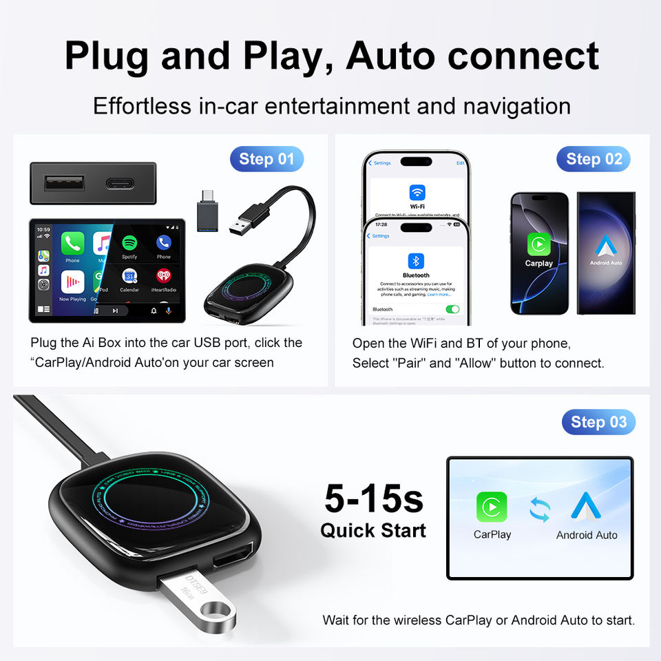 Adaptador Lancol CarPlay Android Auto, Conexión por Cable e Inalámbrica, Mini Caja Inteligente Portátil, Dongle Android 12, 4GB+32GB, Quad-core, Accesorios para Auto