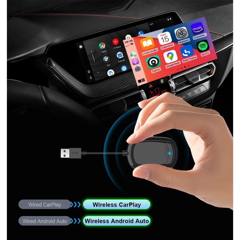 Adaptador Inalámbrico Lancol para CarPlay y Android Auto, Plug & Play, Mini Caja Inteligente Portátil, Compatible con Asistente de Voz para la Mayoría de los Modelos de Vehículos