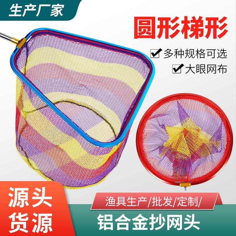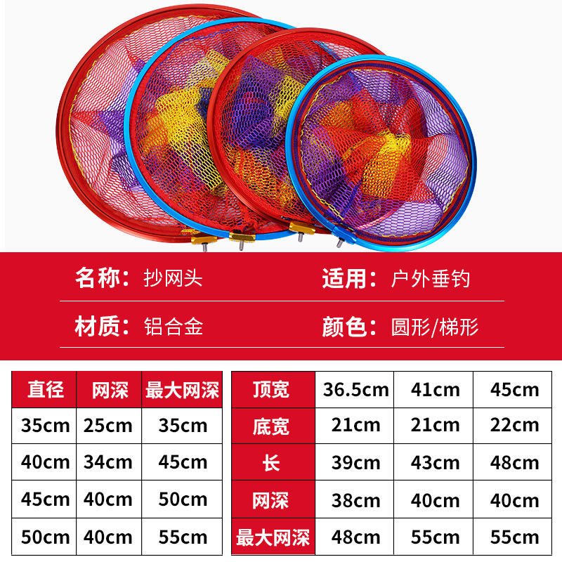 Cabeza de red de pesca triangular y redonda de aleación de aluminio plegable, con bolsa de red profunda grande para pesca