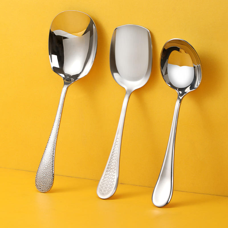 Cuchara para arroz de acero inoxidable 304 con acabado martillado, cuchara de servir doméstica con superficie de alto brillo