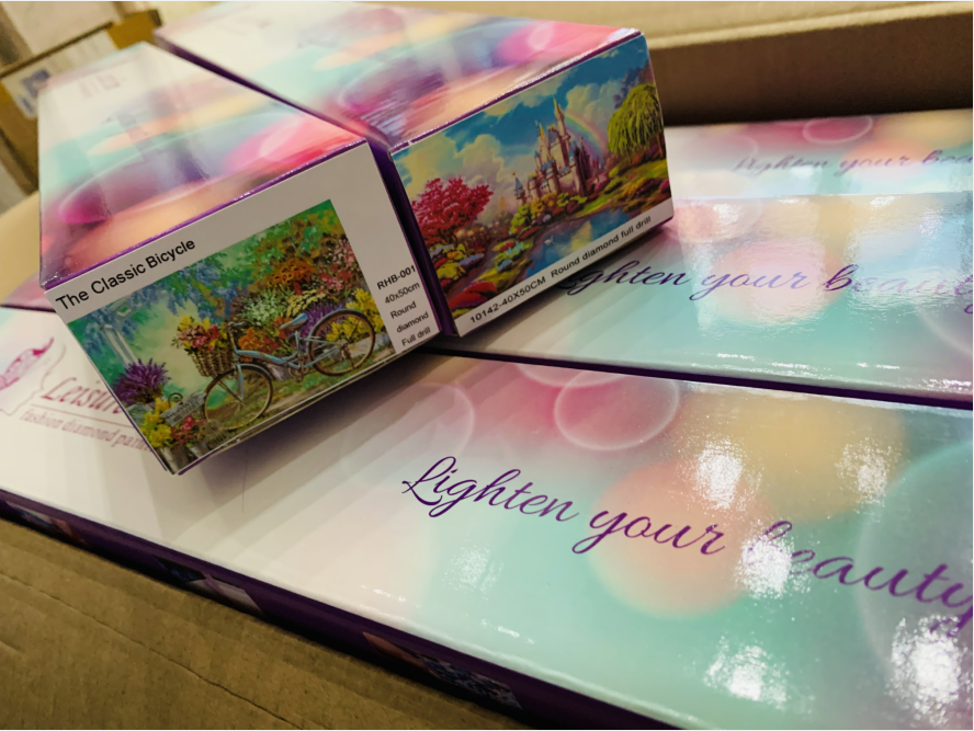 printed canvas in roll, diamonds and tools are put together in a colorful box