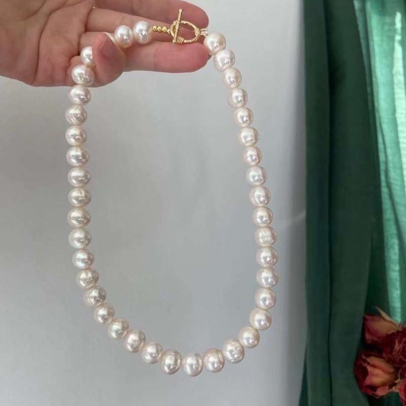 Collar de Perlas de Agua Dulce Naturales, Brillantes, Planas y Versátiles de Lanyun, Collar de Perlas Completas, Regalo para Mamá