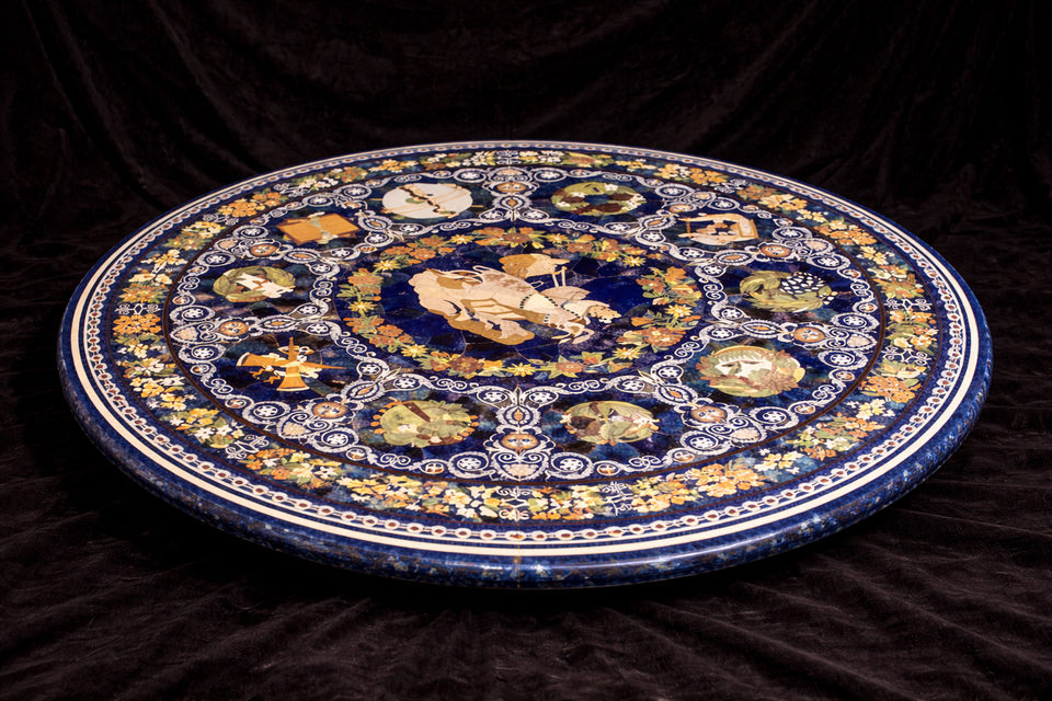 Mesa de Centro Moderna Hecha a Mano con Incrustaciones de Lapislázuli y Mármol, Ecológica, para Decoración de Hogar, Hotel o Aniversario