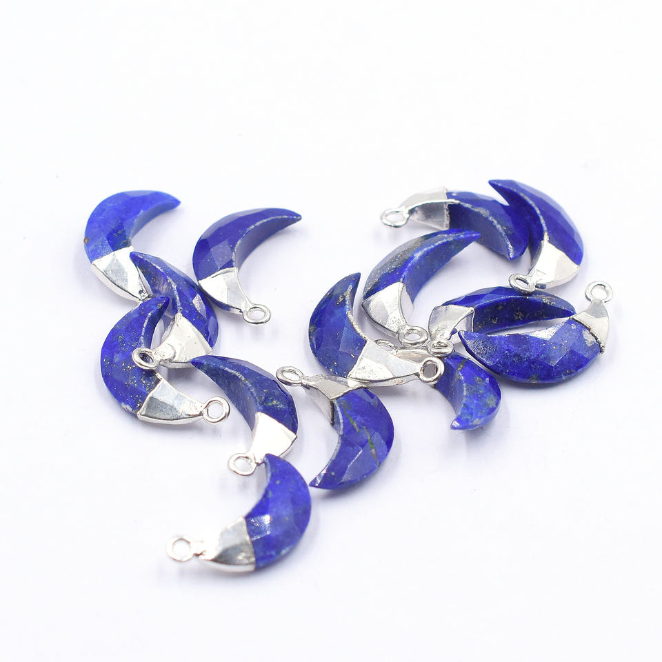 Product Name:Lapis Lazuli 16 To 18 MM With Bail Moon Shape Silver Plated Pendant