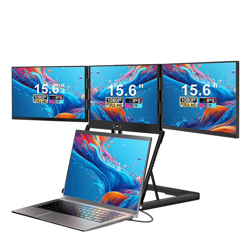Extensor de pantalla horizontal para portátil, monitor cuádruple de 15.6 pulgadas, monitor portátil FHD IPS, 1 cable para 3 pantallas a través de USB C para portátil
