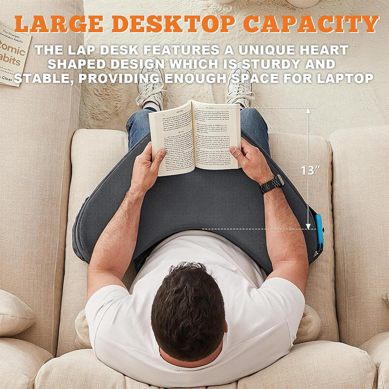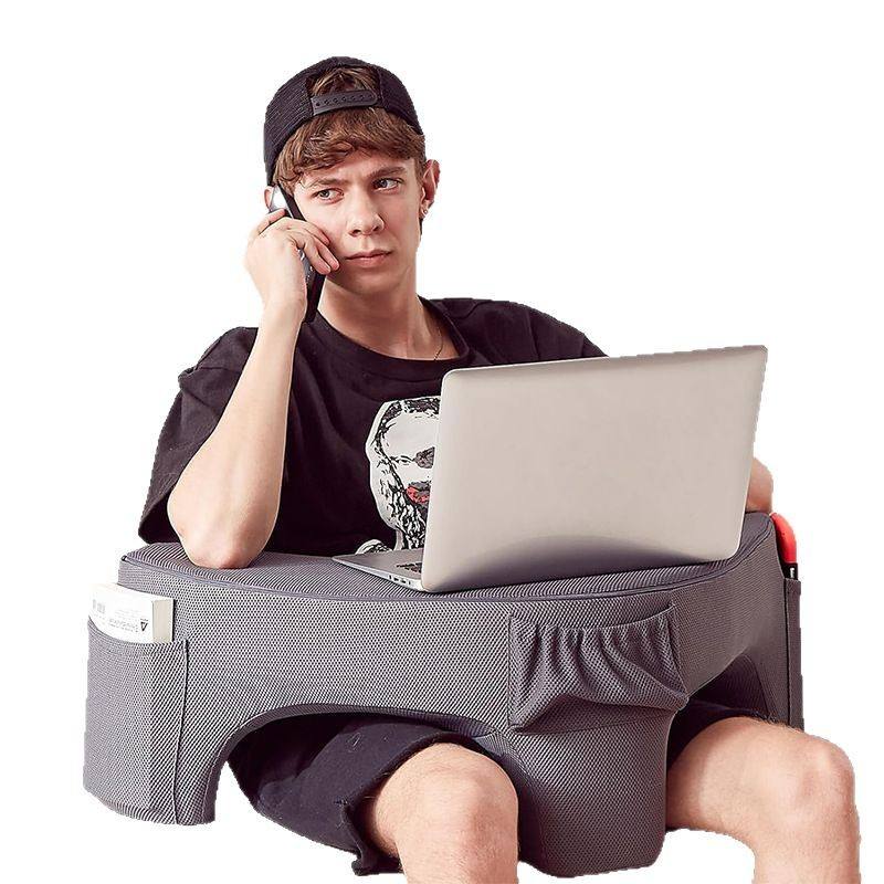 Soporte para portátil con bolsillos de almacenamiento para uso en cama o escritorio, cojín de espuma viscoelástica, soporte para portátiles, juegos, uso cómodo en el hogar y la oficina