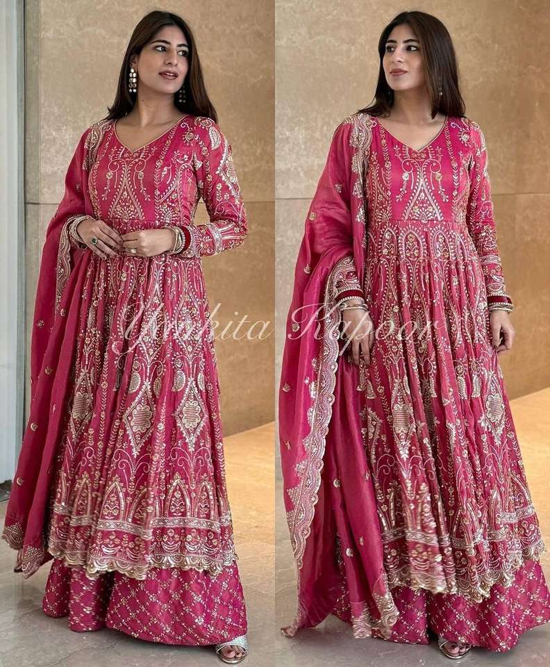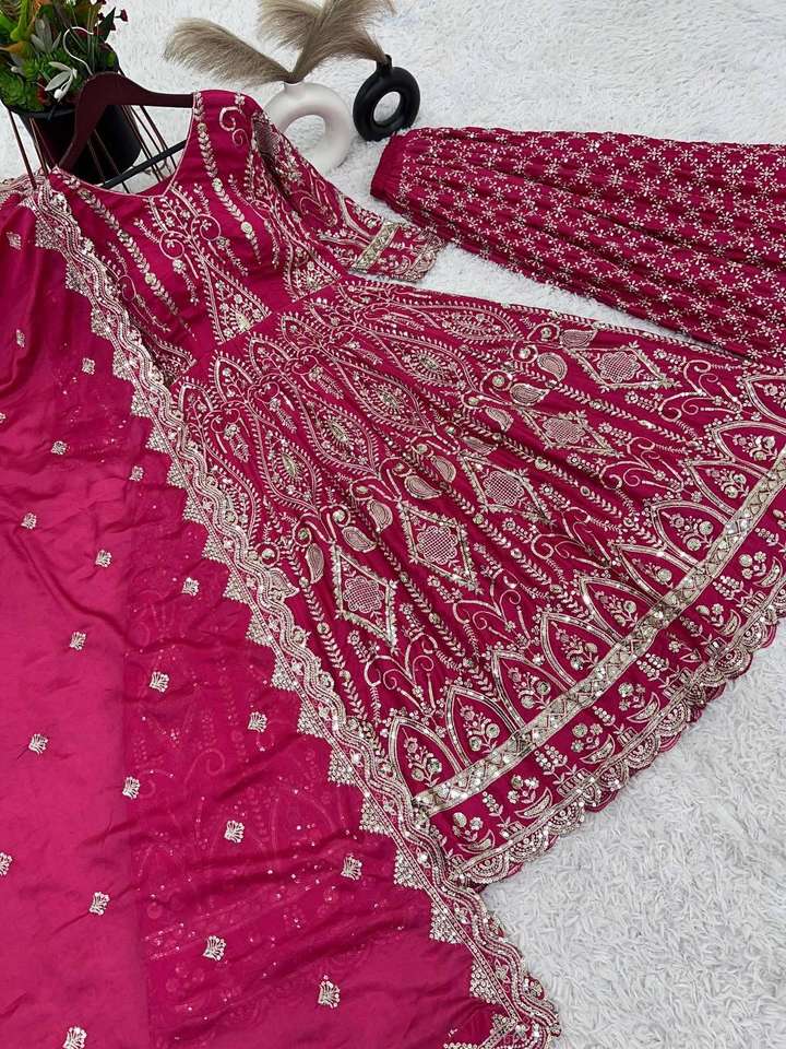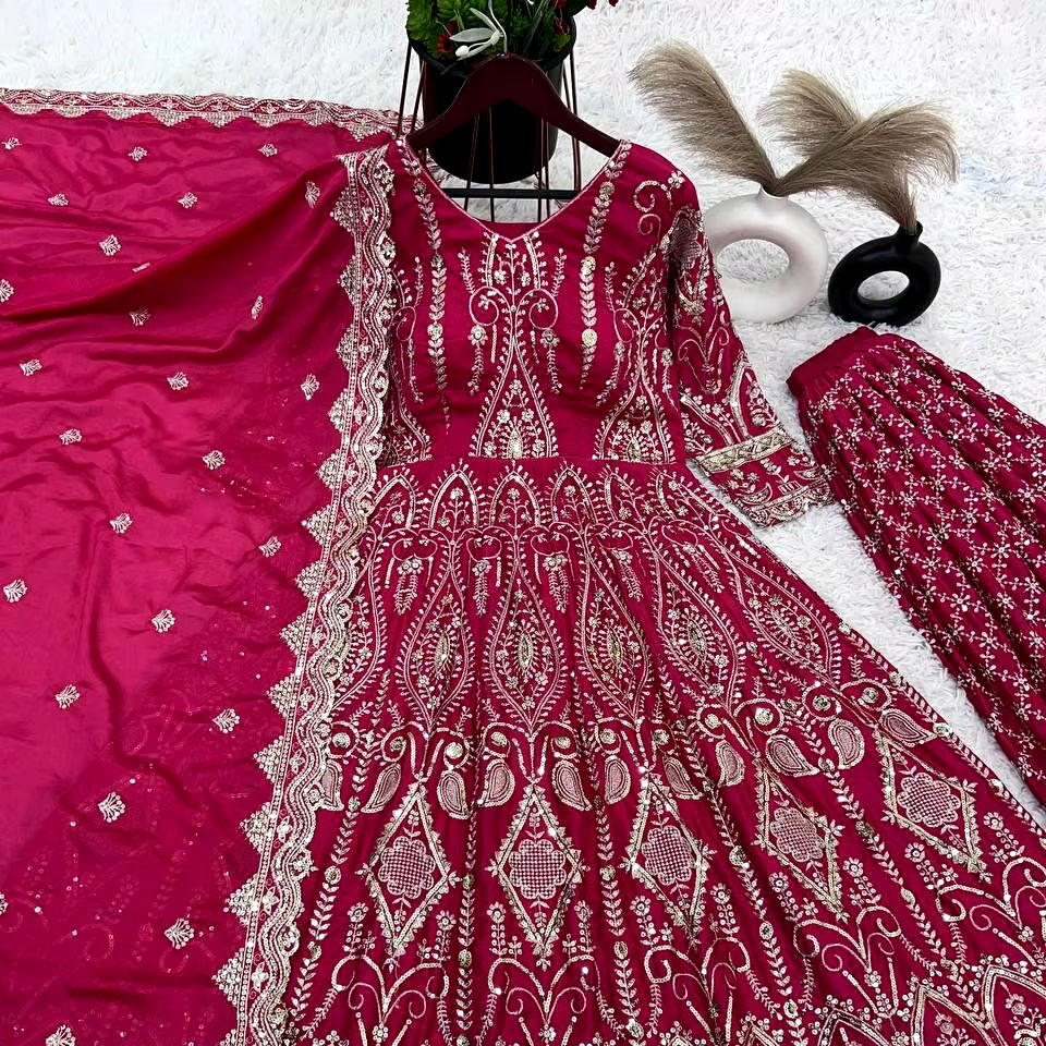 Chinon Silk Sequence Embroidery Gown & Bottom With Dupatta