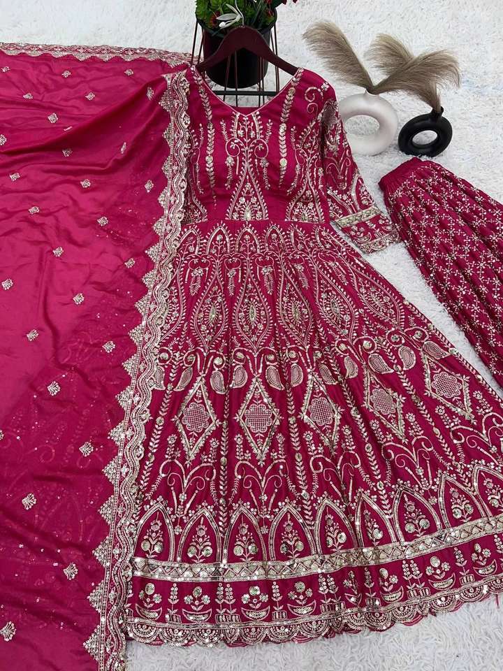 Larest Designer Heavy Sequence bordado Chinon vestido de seda y Dupatta totalmente cosido Readymade largo elegante conjunto de vestido para mujer